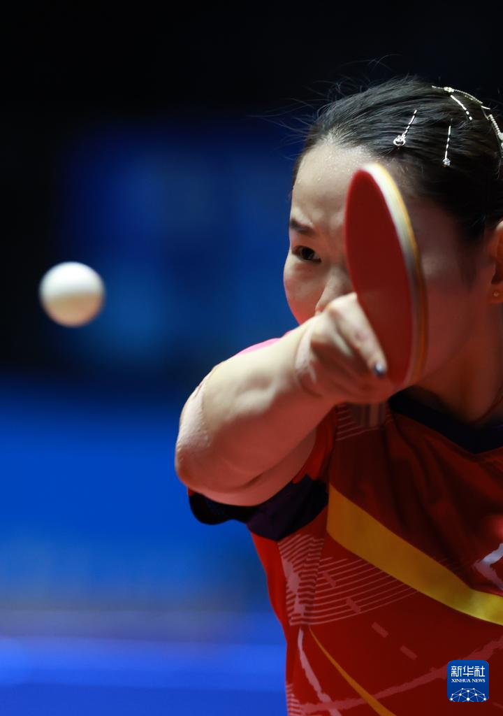 11月12日,山东队选手陈梦在比赛中回球。