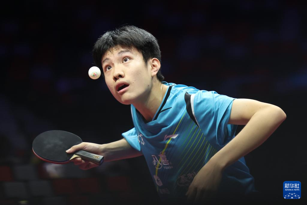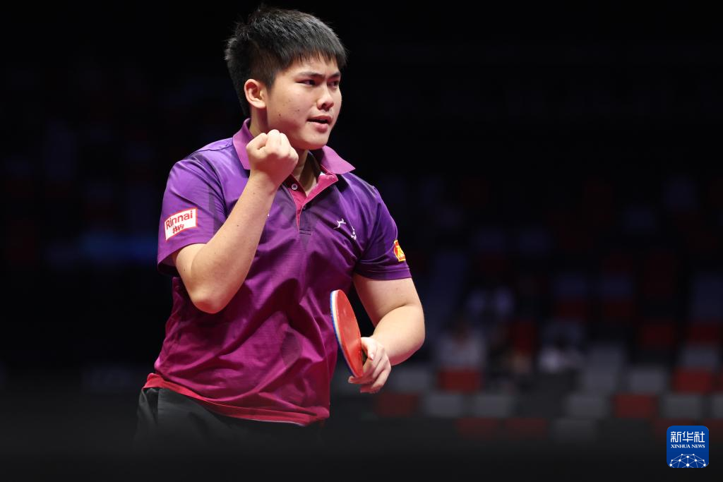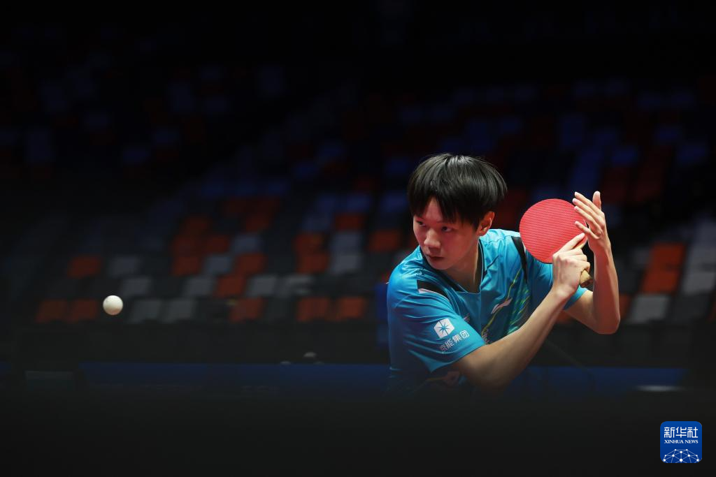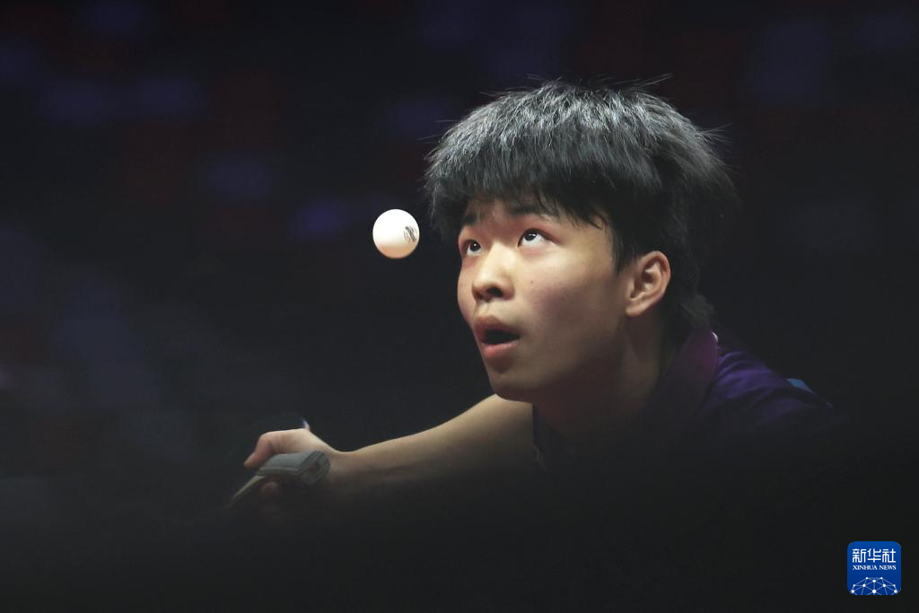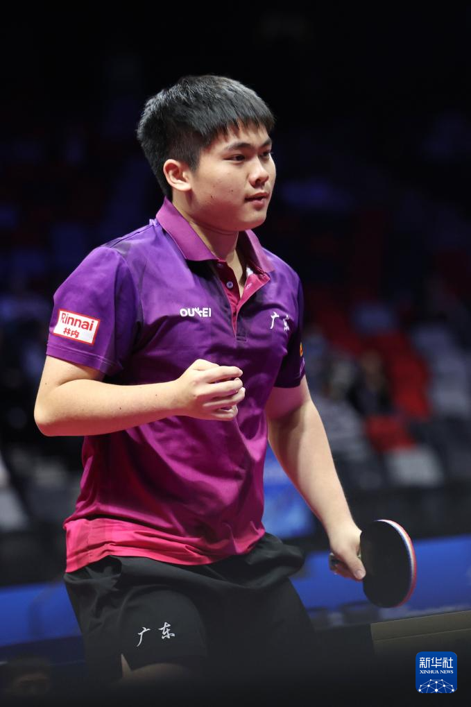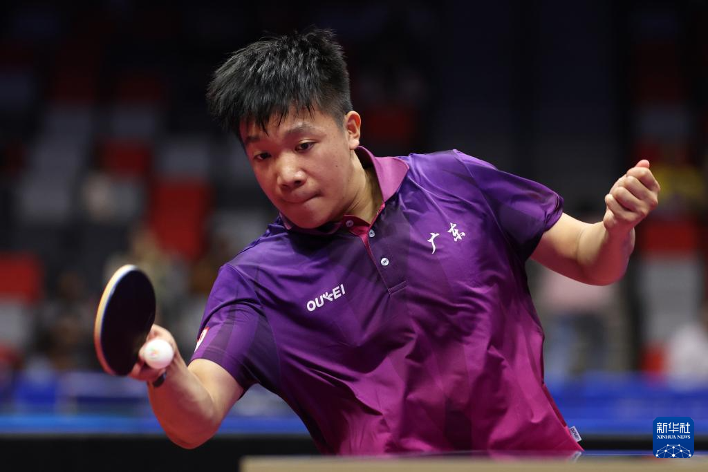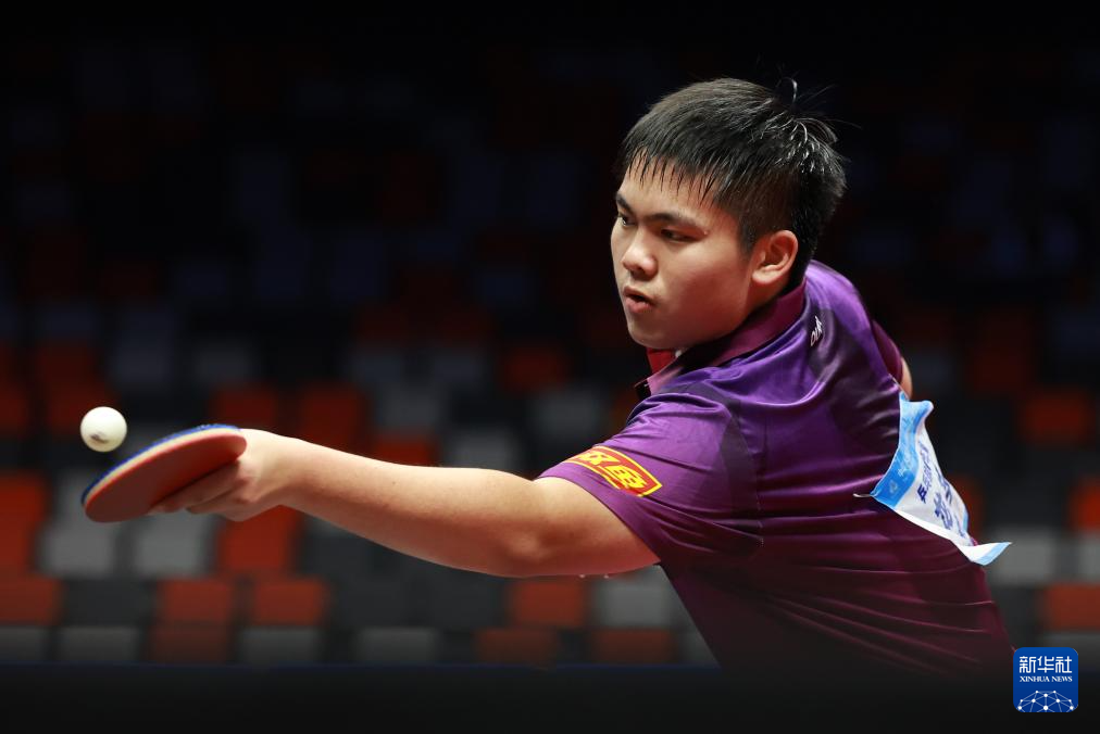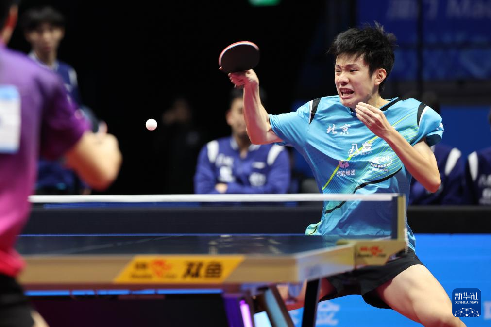 11月13日,北京队选手黄友皓在比赛中。他3比0战胜广东队选手冯泽华。