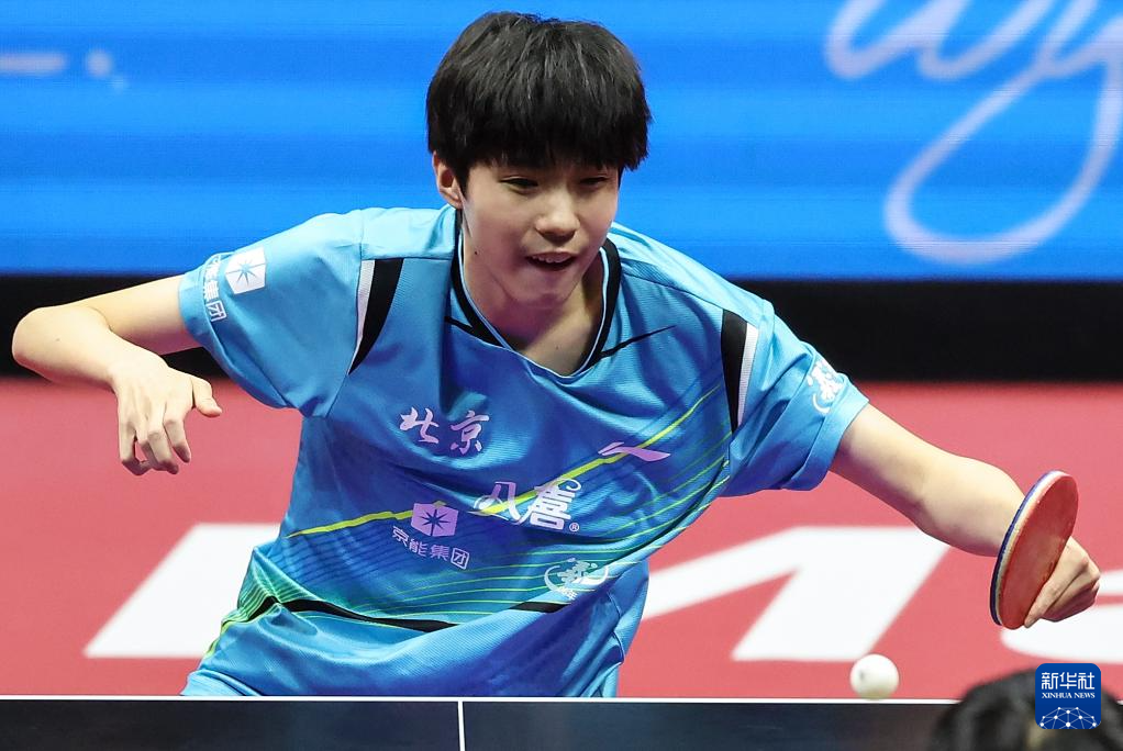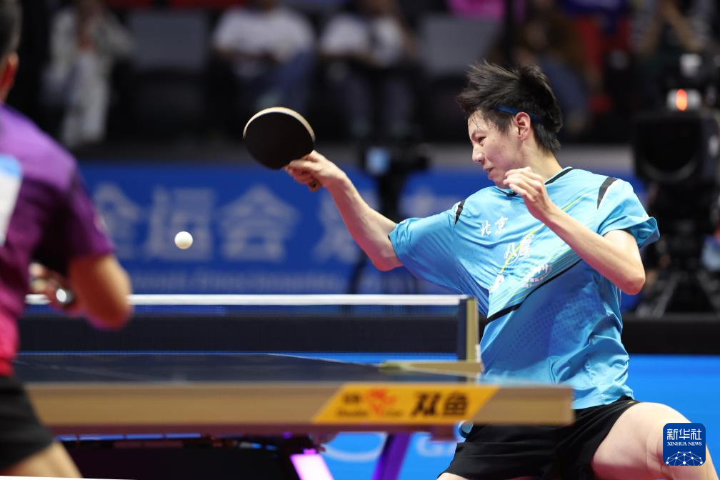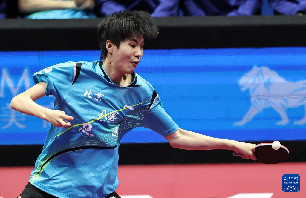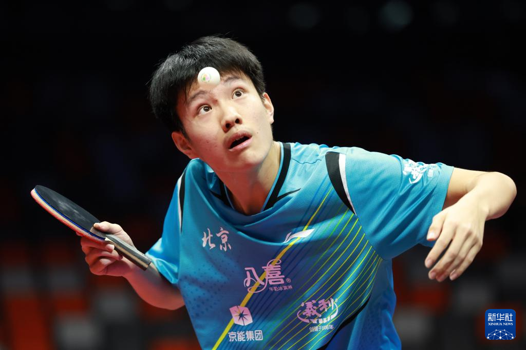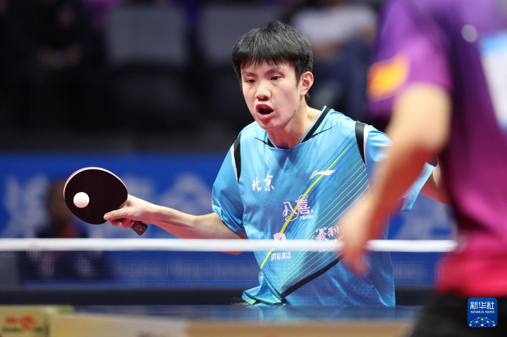 11月13日,北京队选手黄友皓在比赛中回球。他3比0战胜广东队选手冯泽华。