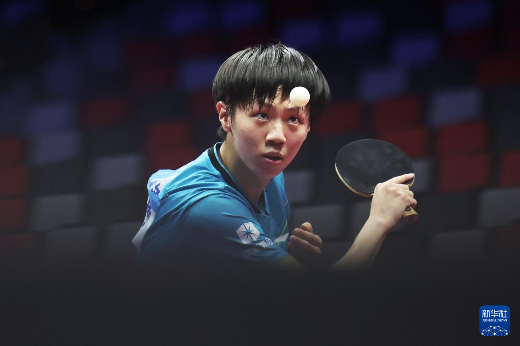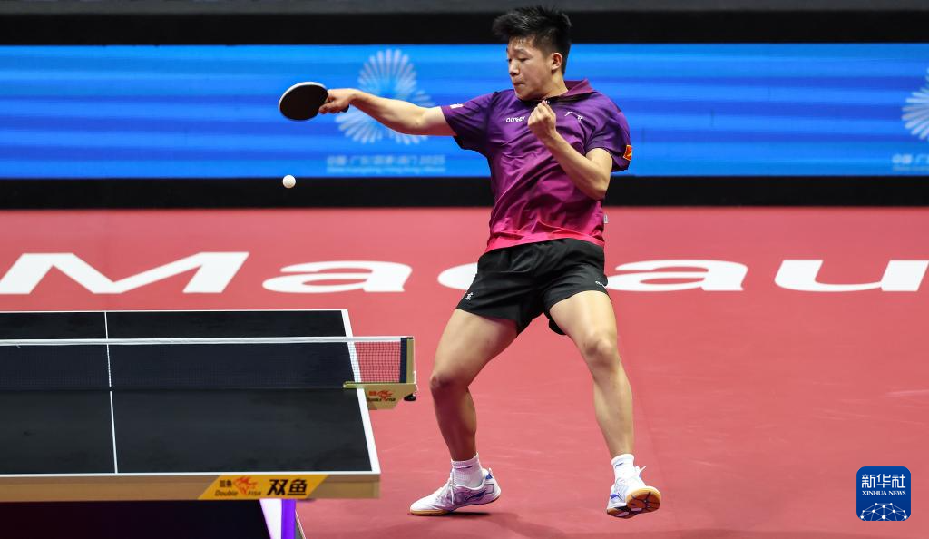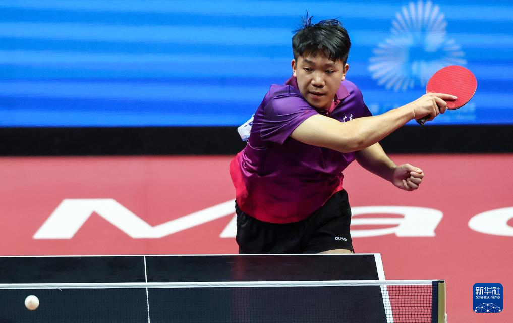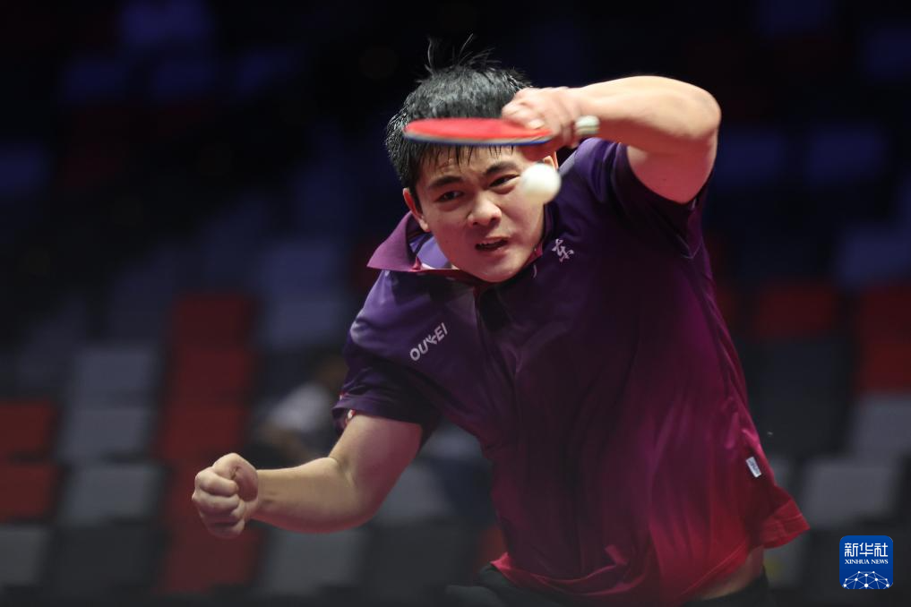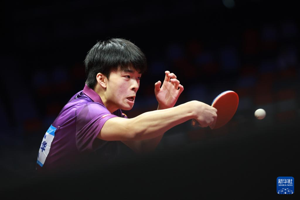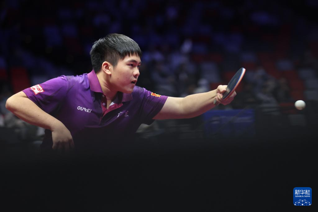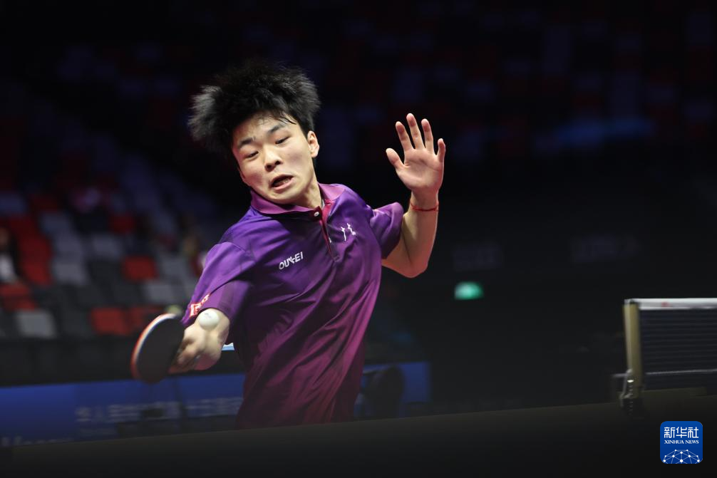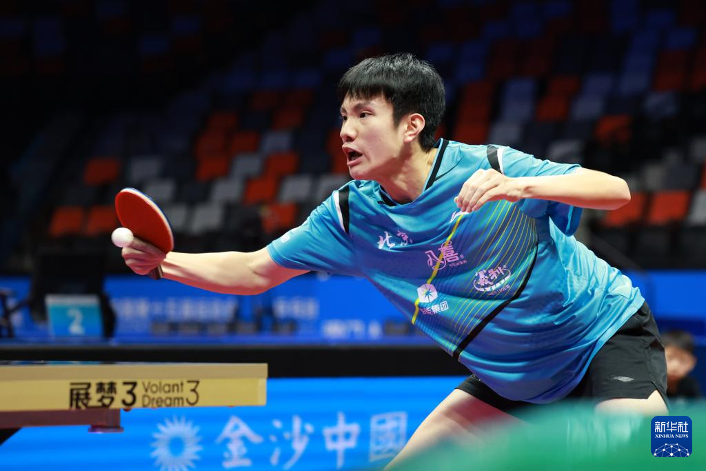 11月13日,广东队选手冯泽华在比赛中回球。他0比3不敌北京队选手黄友皓。