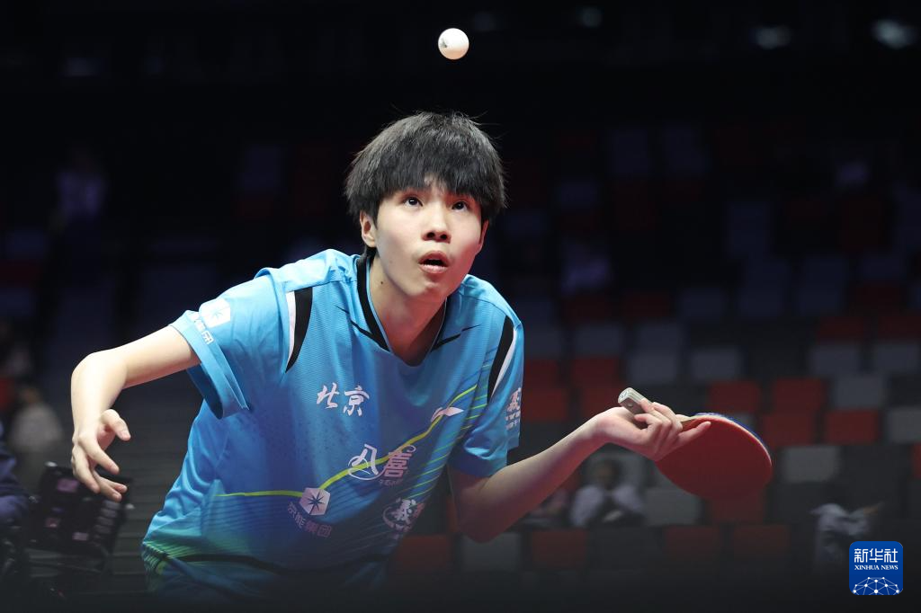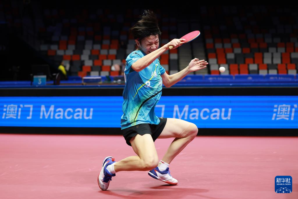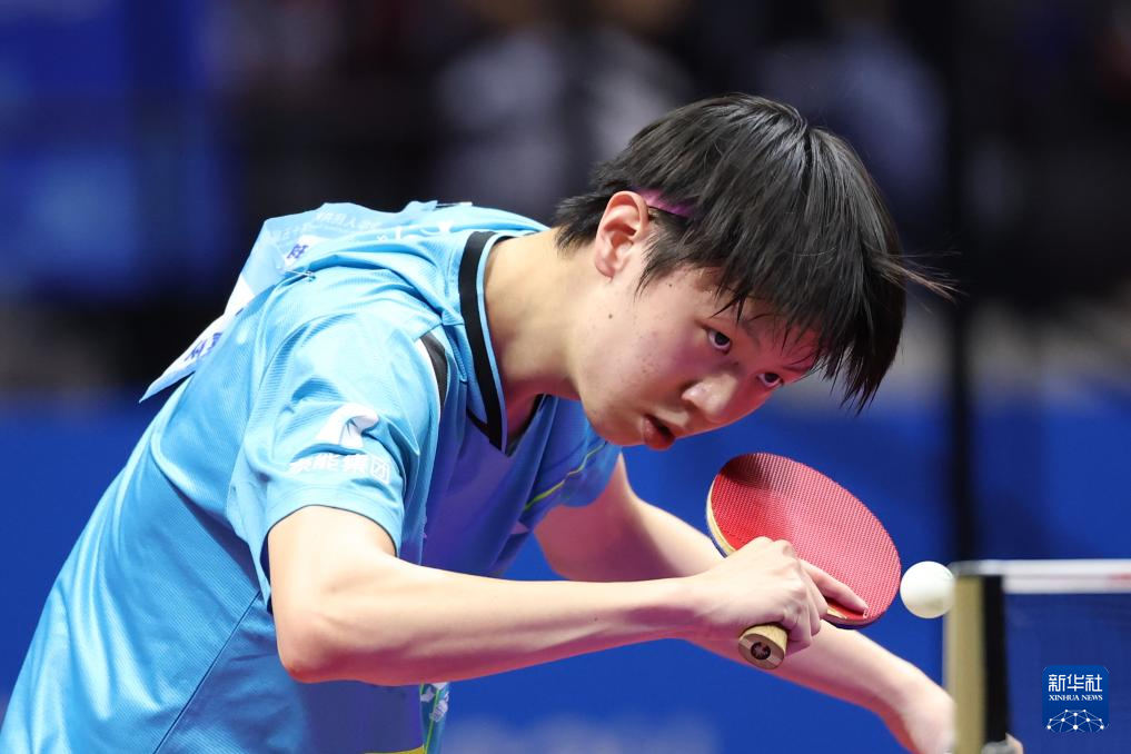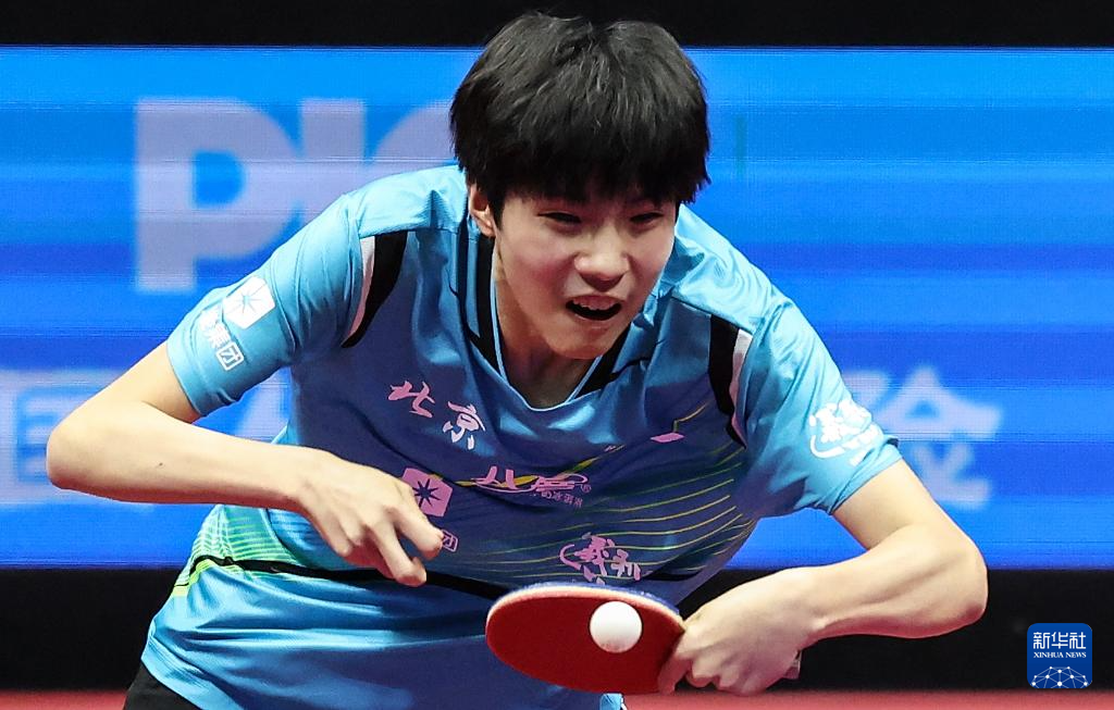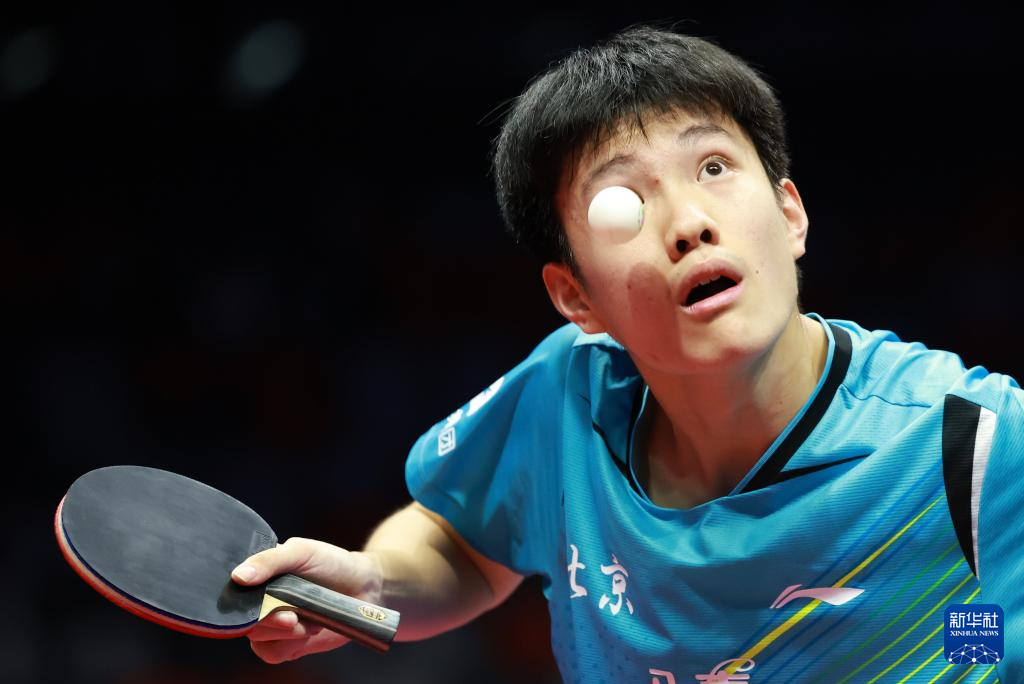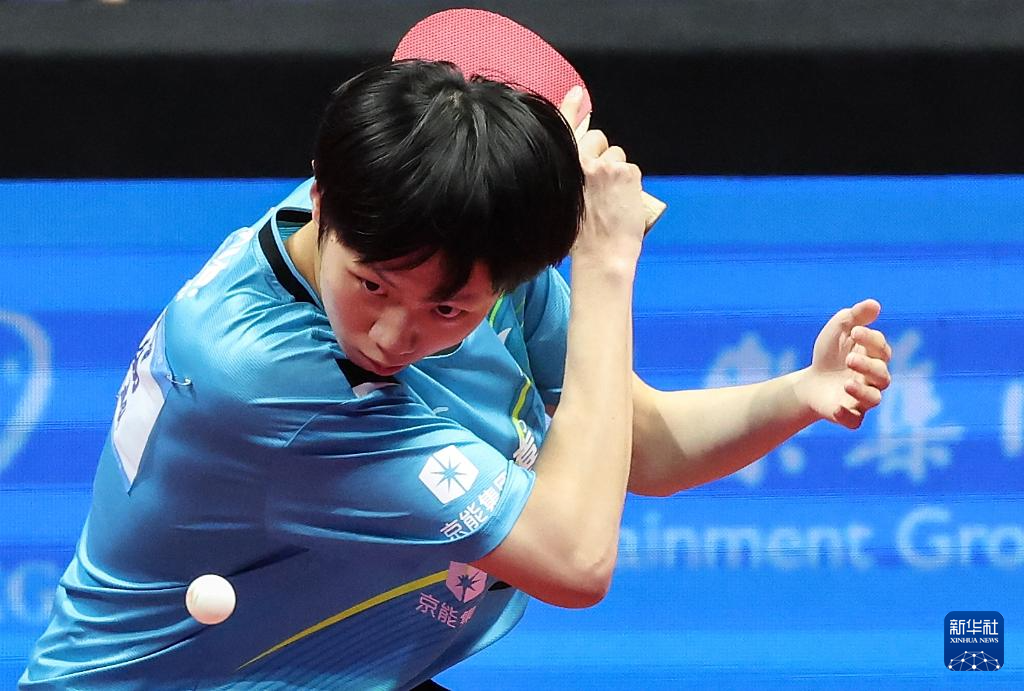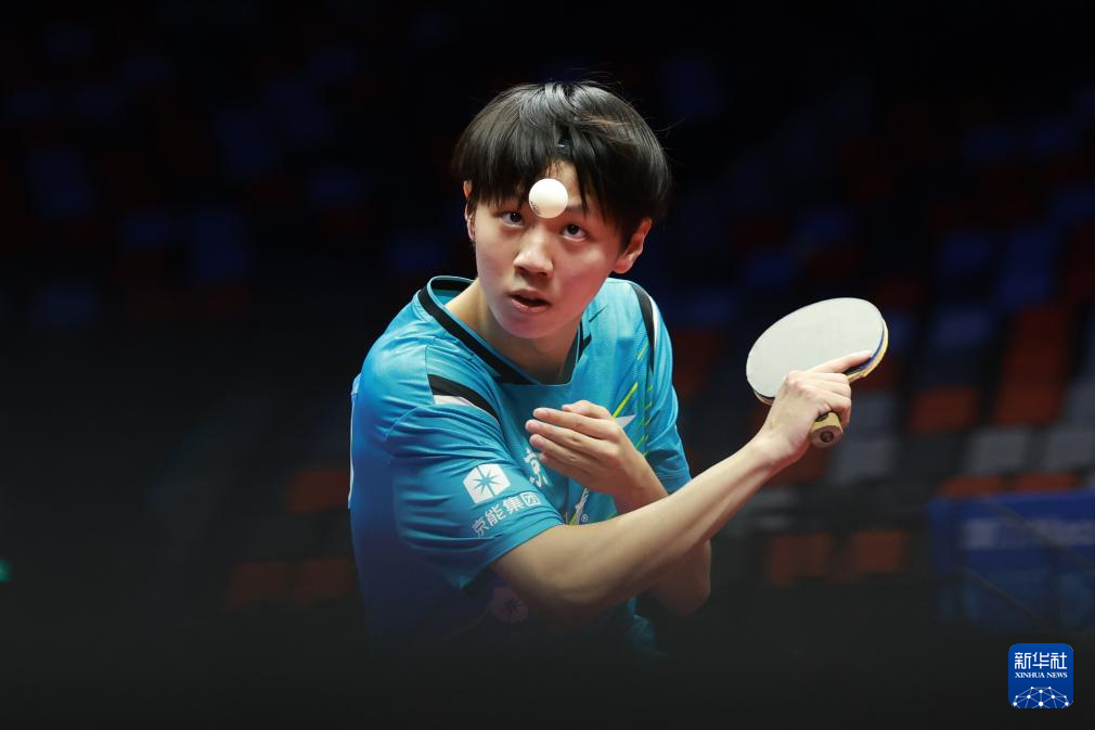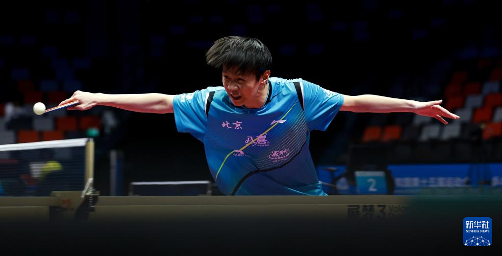 11月13日,广东队选手冯泽华在比赛中回球。他0比3不敌北京队选手黄友皓。
