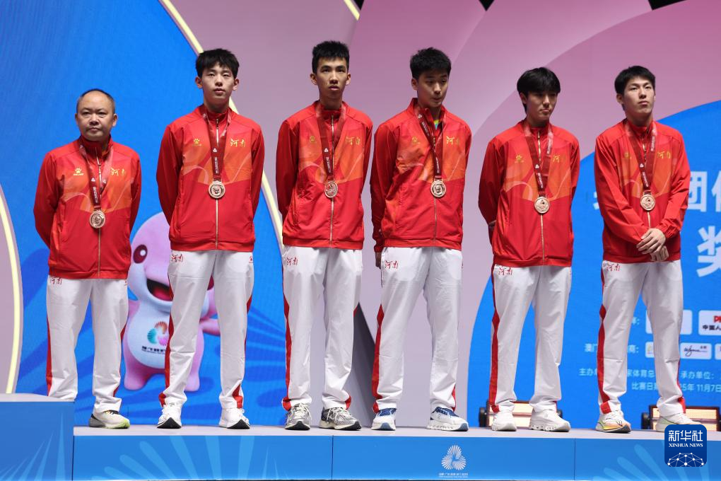 11月13日,获得季军的河南队成员在颁奖仪式上。