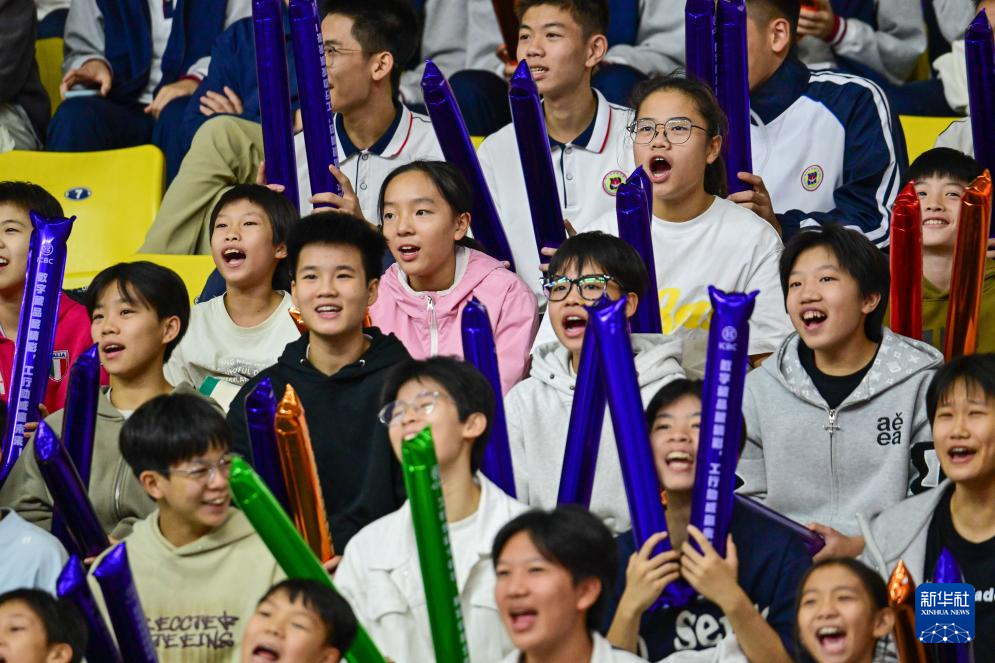 11月13日,现场球迷为广东队球员加油。