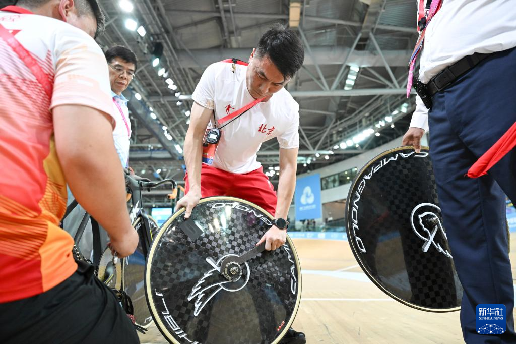 11月13日,北京队工作人员在比赛中更换轮胎。