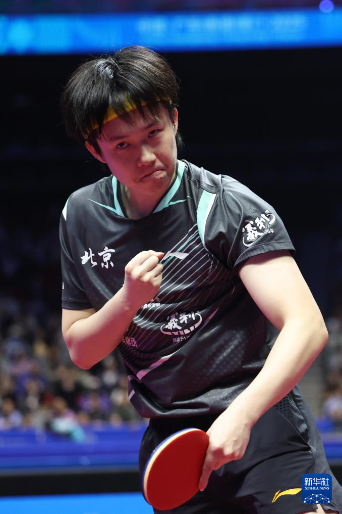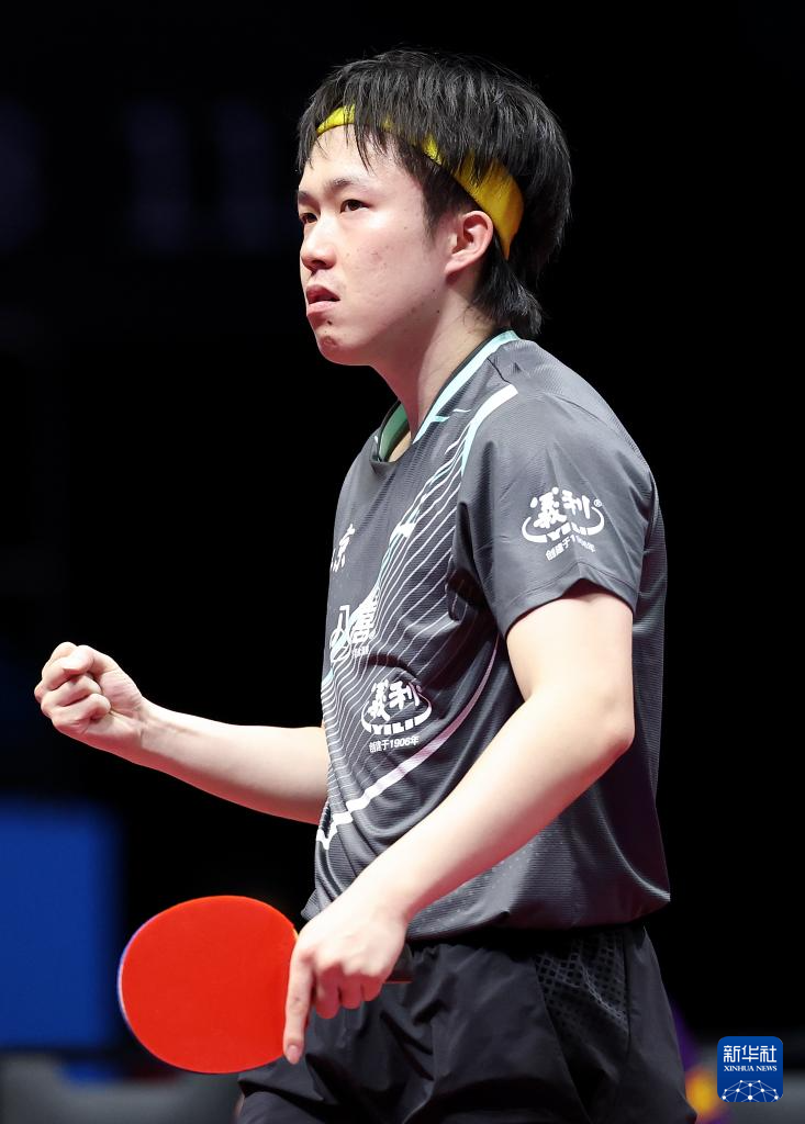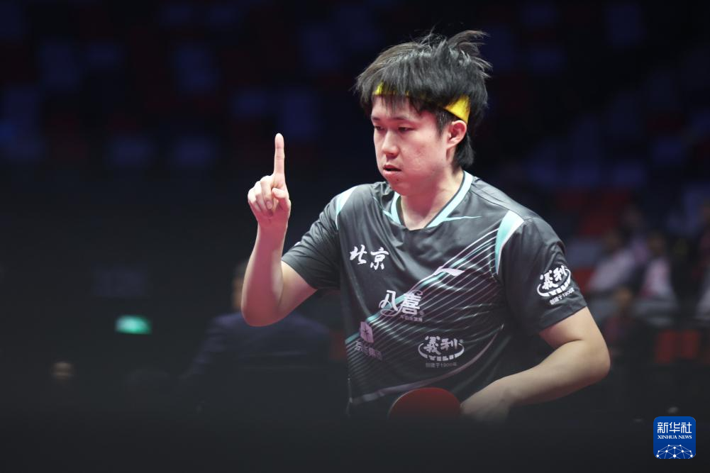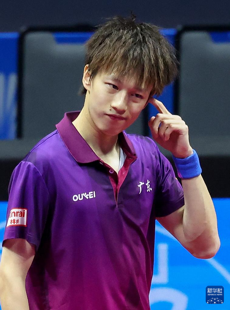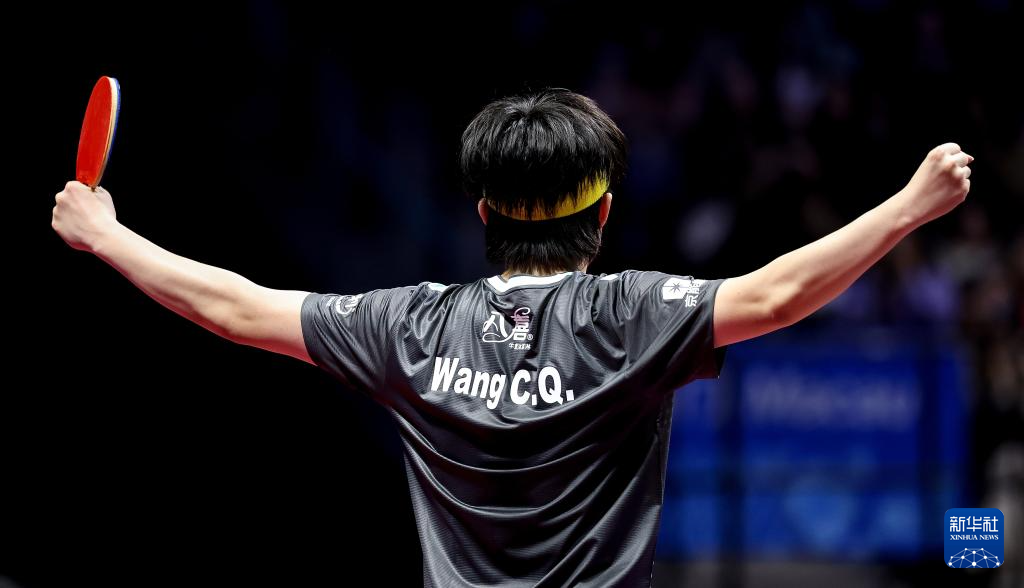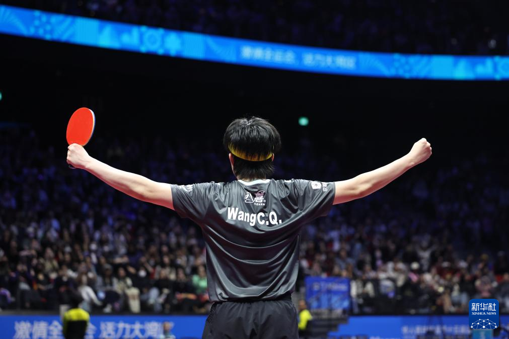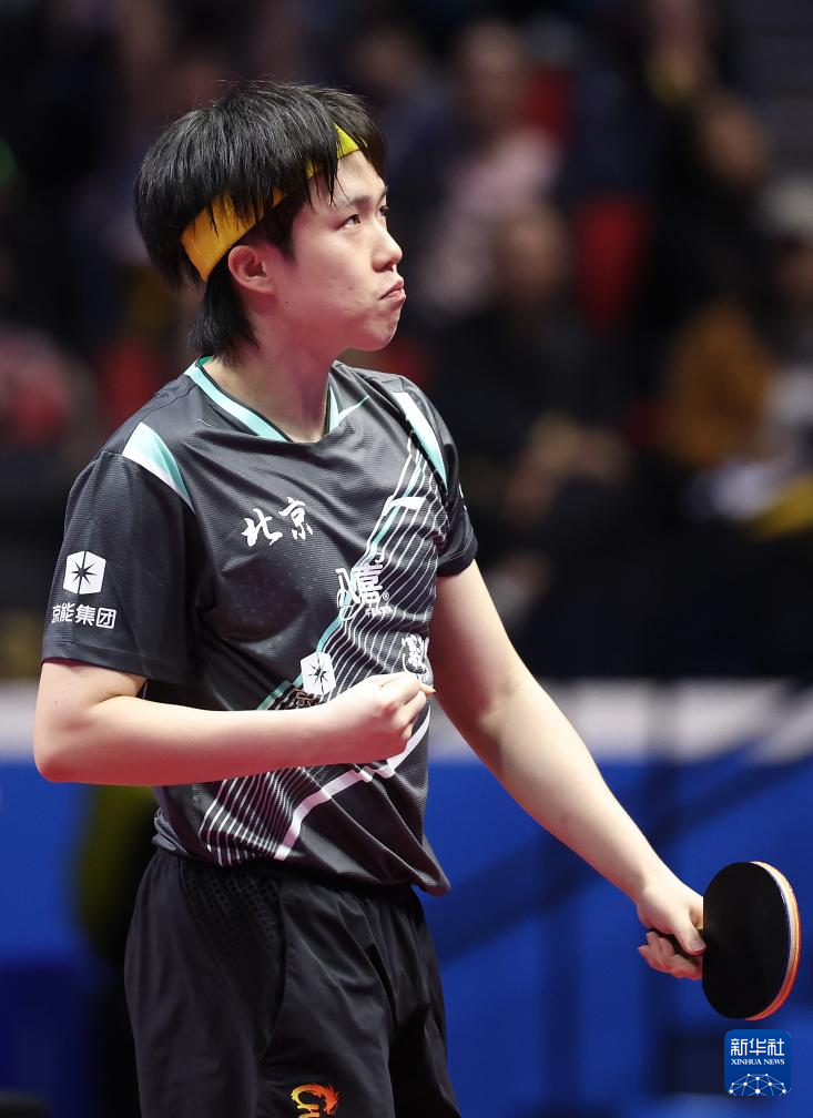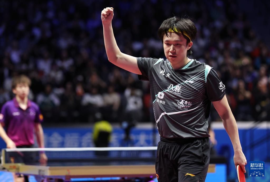 11月13日,北京队选手王楚钦在比赛后庆祝胜利。