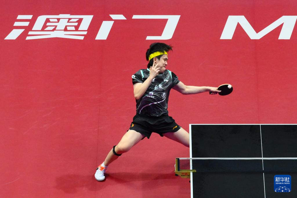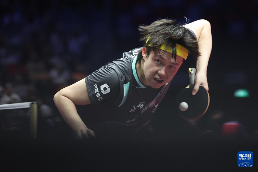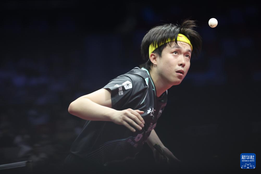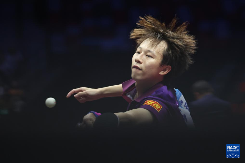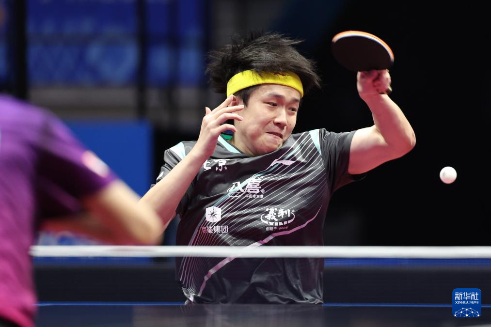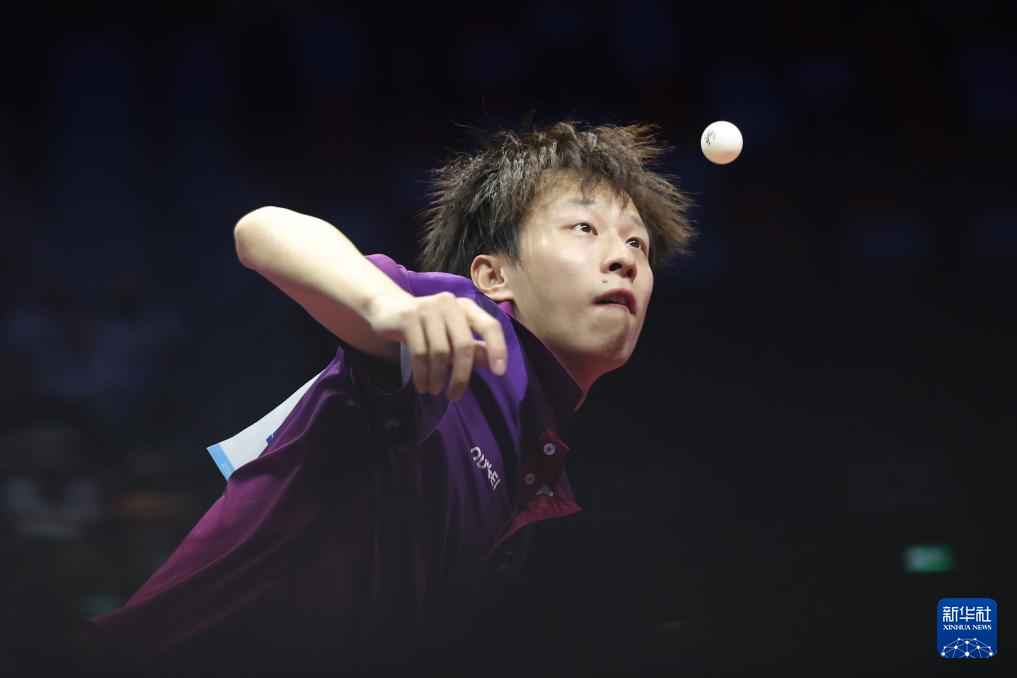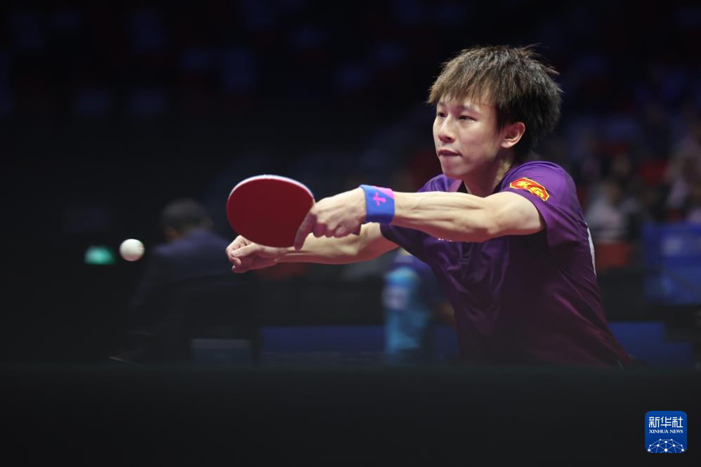 11月13日,北京队选手王楚钦在比赛中回球。
