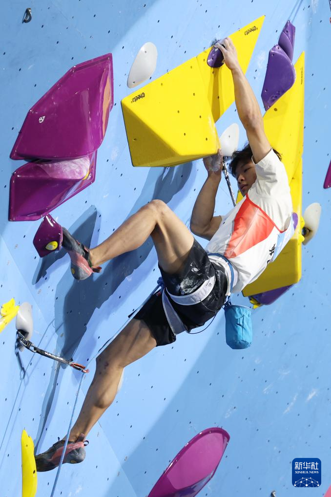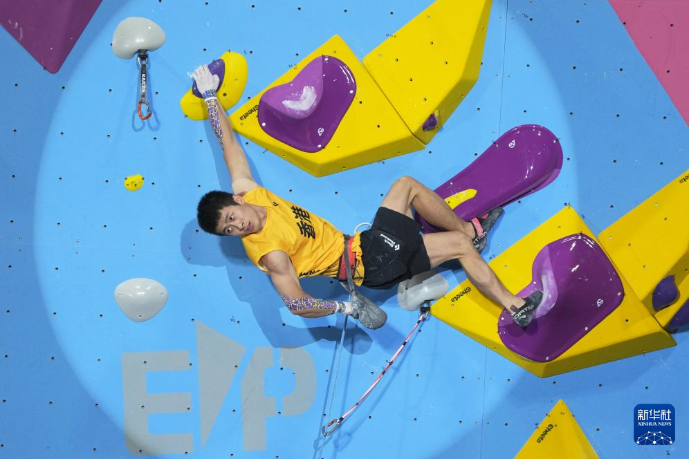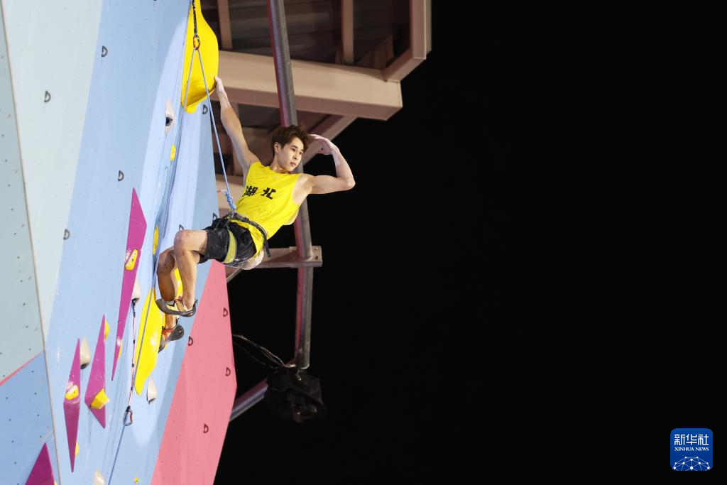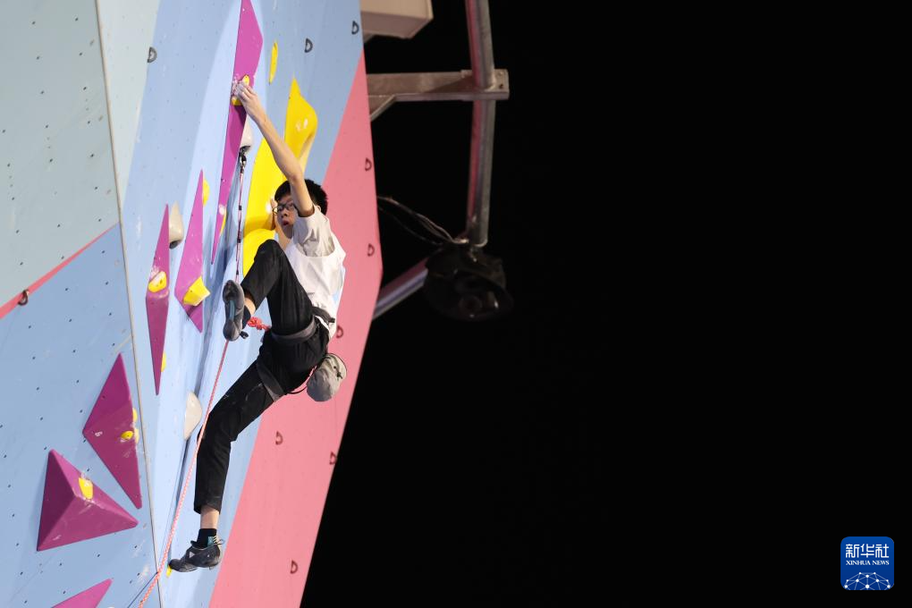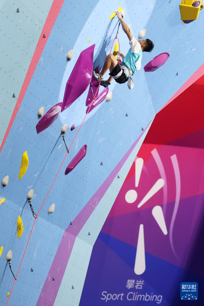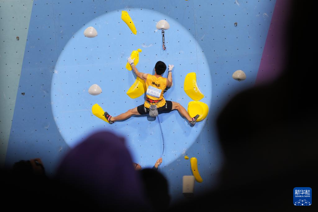 当日,第十五届全国运动会攀岩项目男子难度决赛在广州举行。