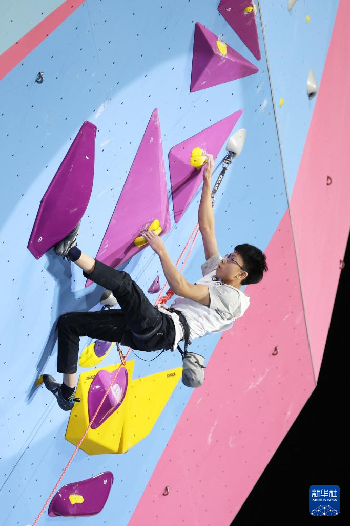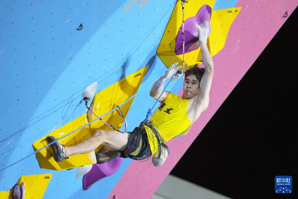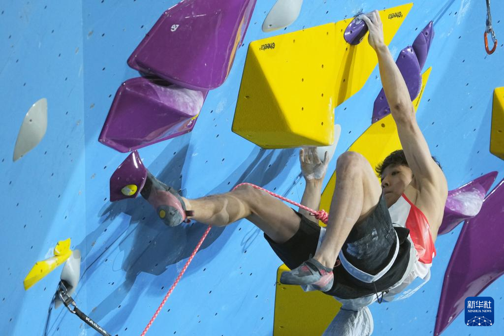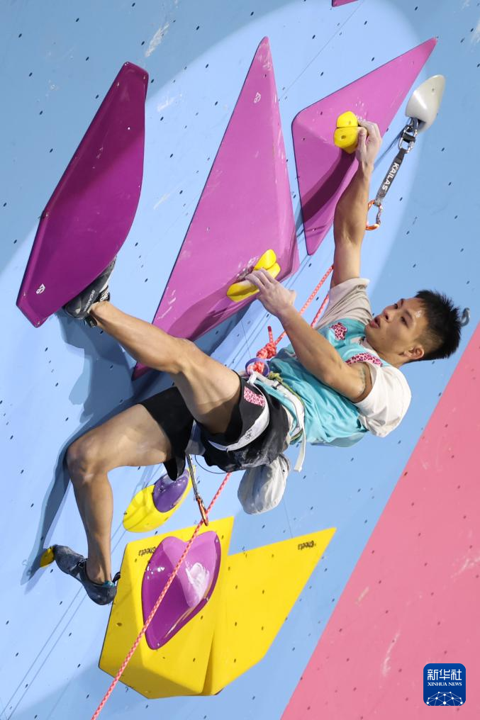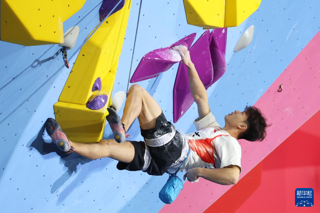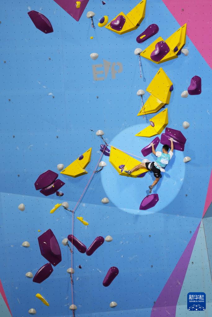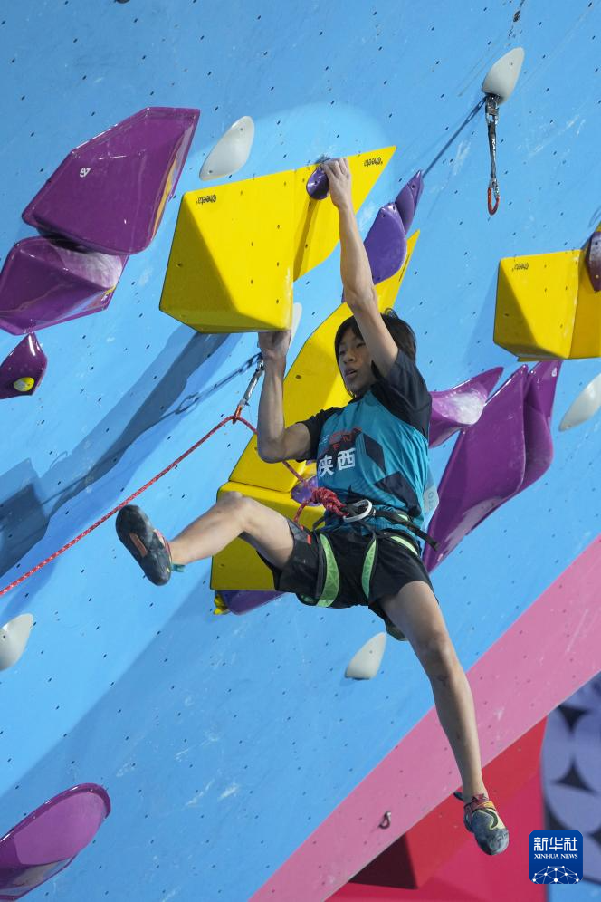 当日,第十五届全国运动会攀岩项目男子难度决赛在广州举行。