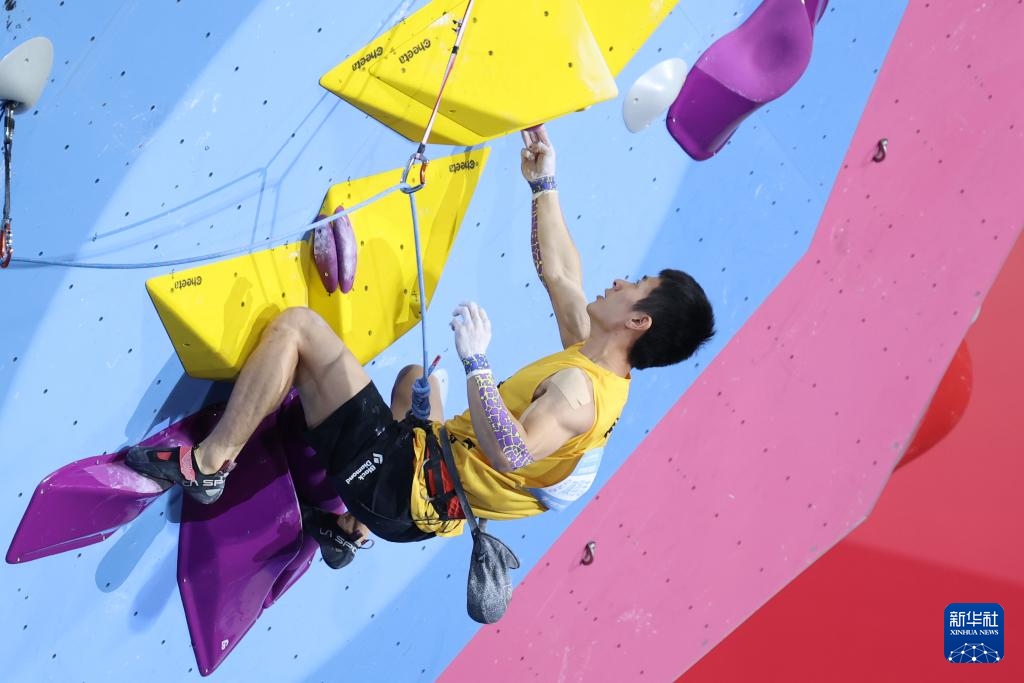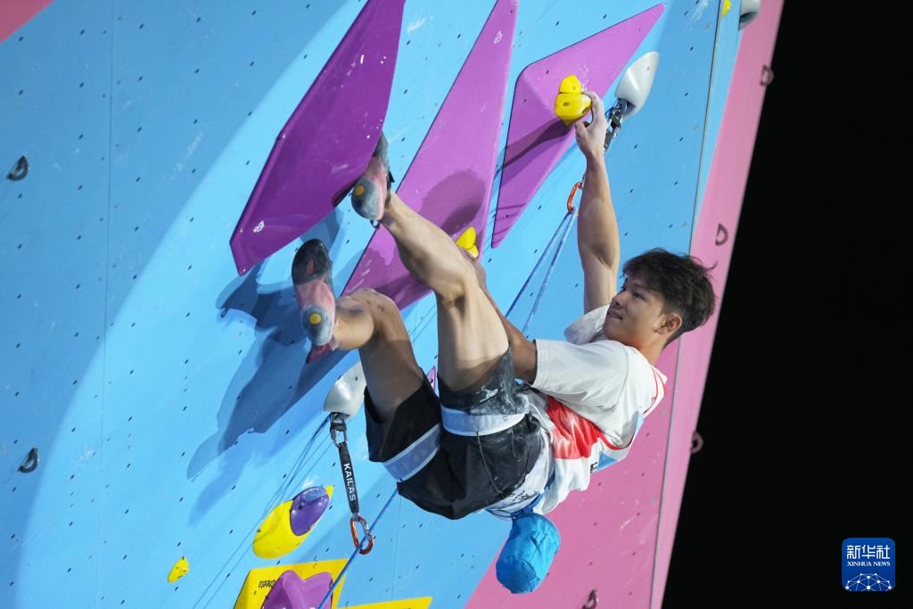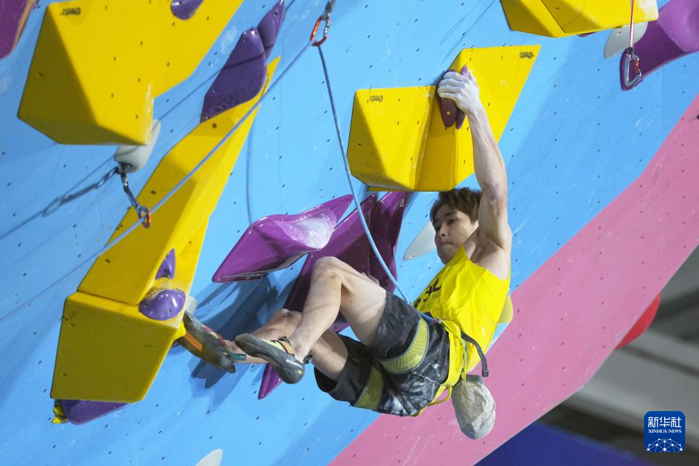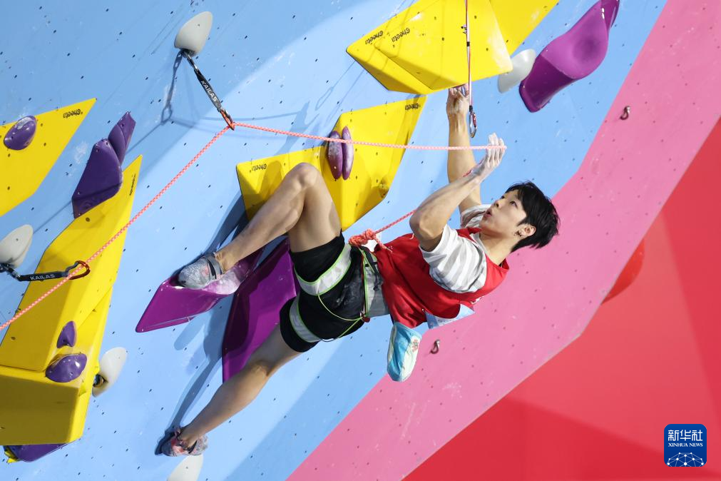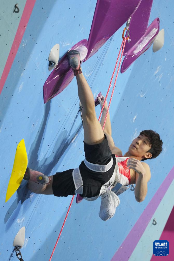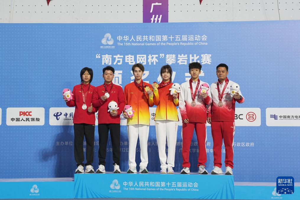 当日,第十五届全国运动会攀岩项目男子难度决赛在广州举行。