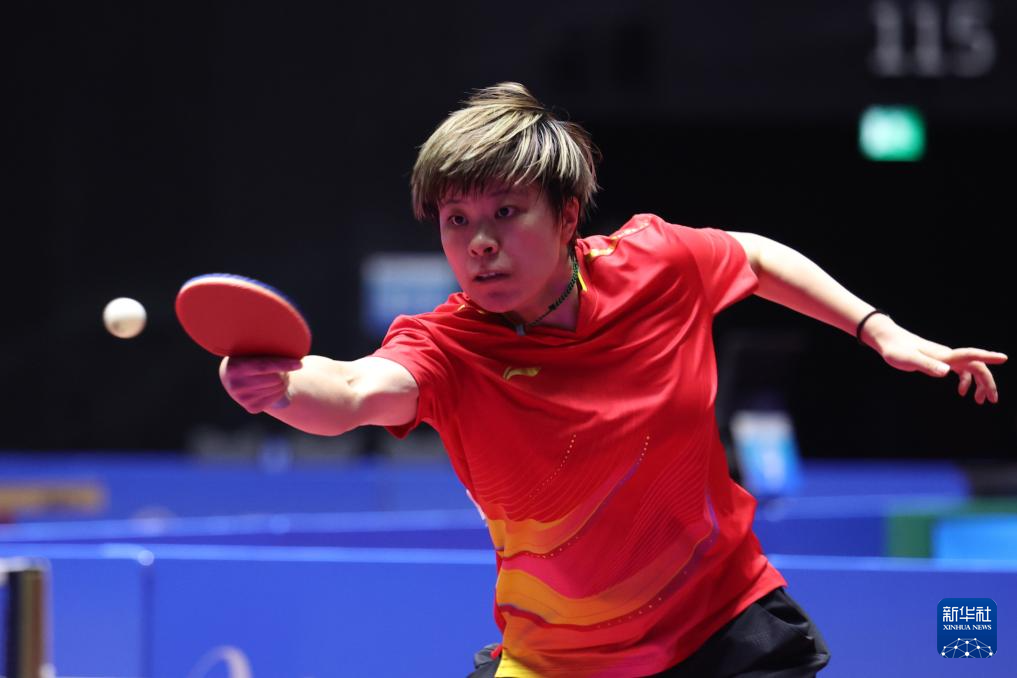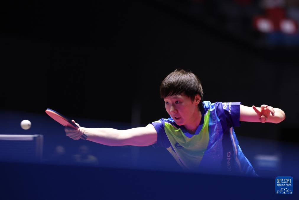 11月13日,黑龙江队选手王曼昱在比赛中回球。