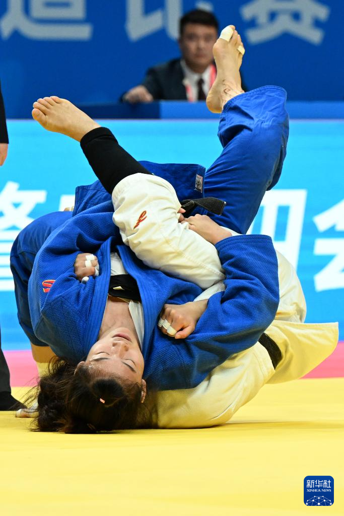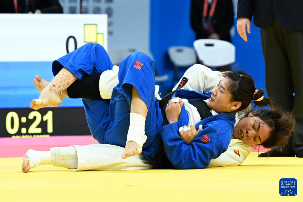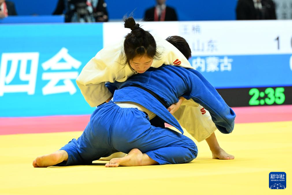 11月13日,山东队选手孙晓倩与内蒙古队选手王令臻(前)在比赛中。