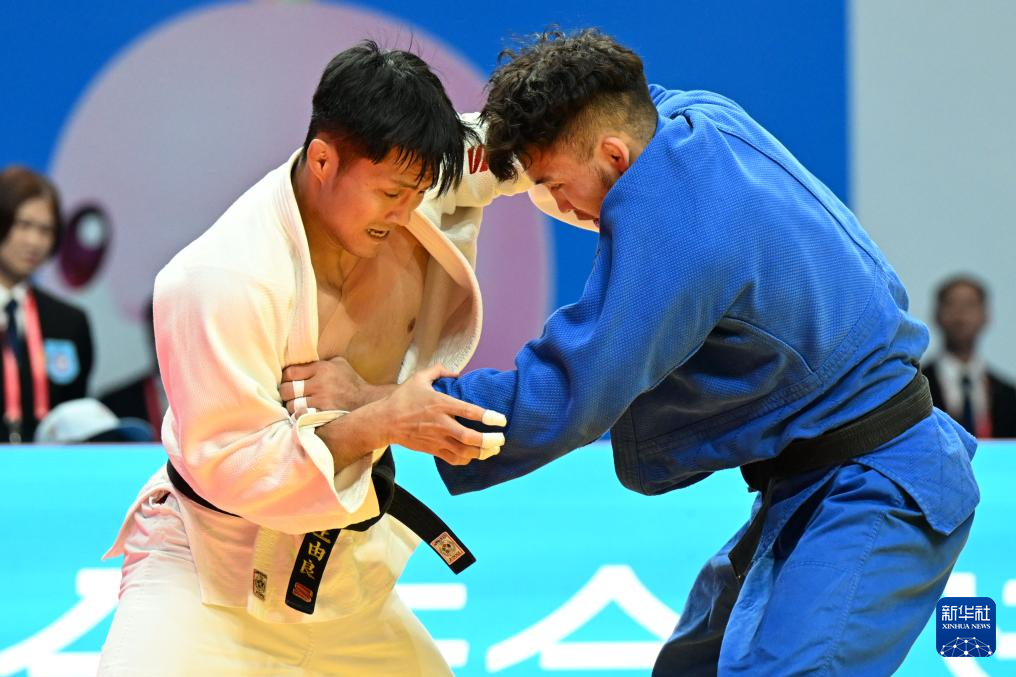 11月13日,山东队选手尹永杰(右)与内蒙古队选手额日和木巴图在比赛中。