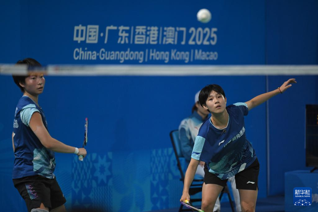 11月13日,福建队选手白婷婷(右)/许熏尹在女双比赛中。她们2比1战胜辽宁队选手徐佳妮/原馨懿。