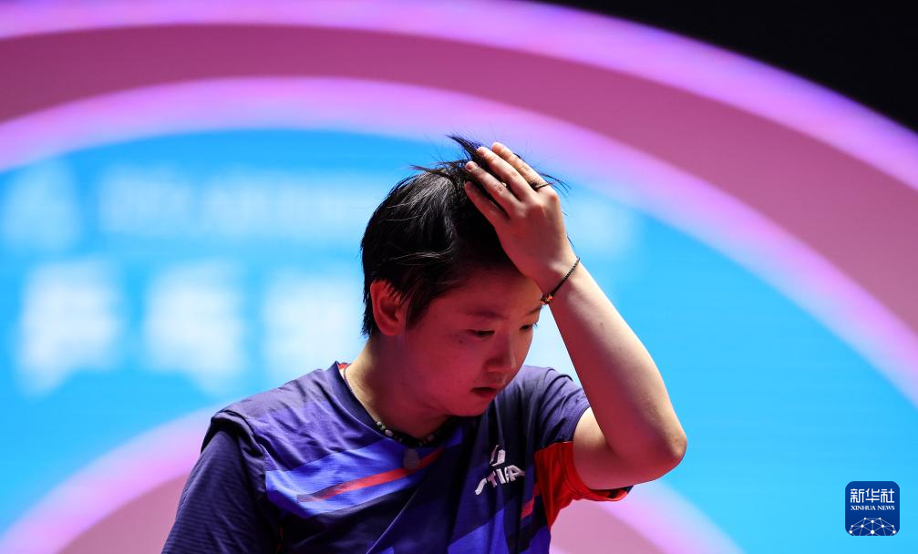 11月13日,河北队选手孙颖莎在比赛中回球。