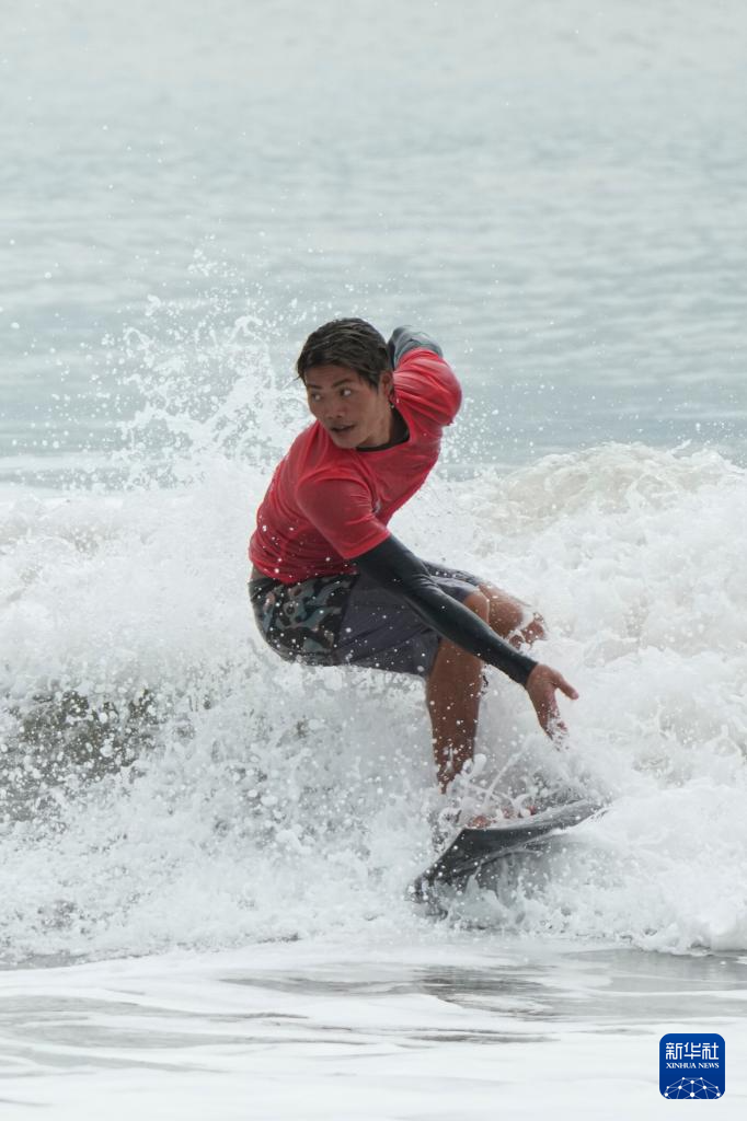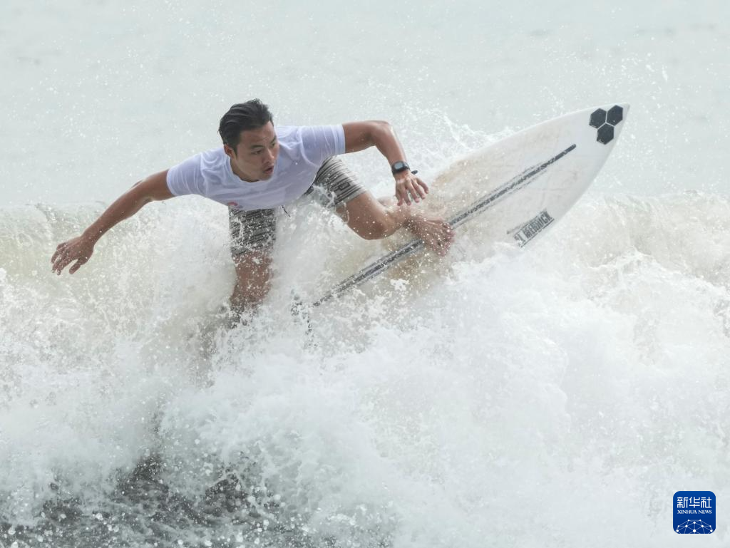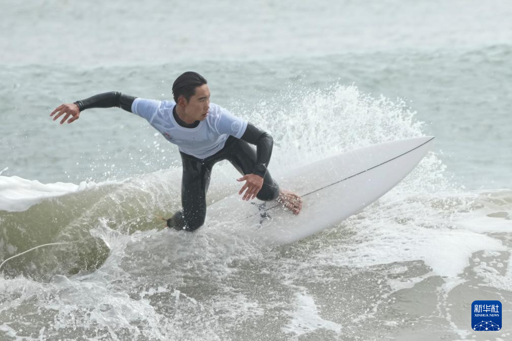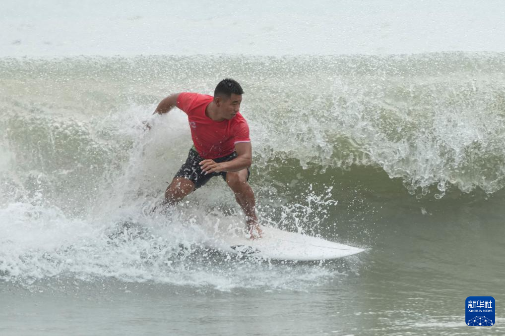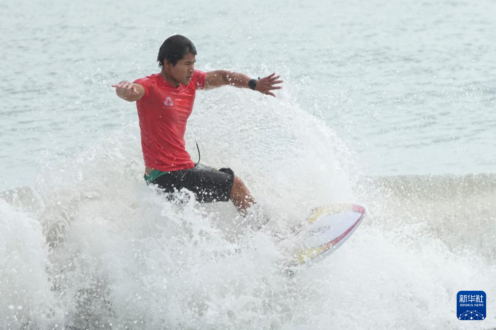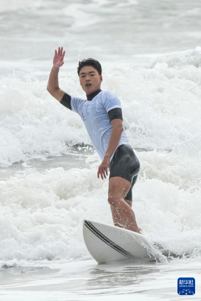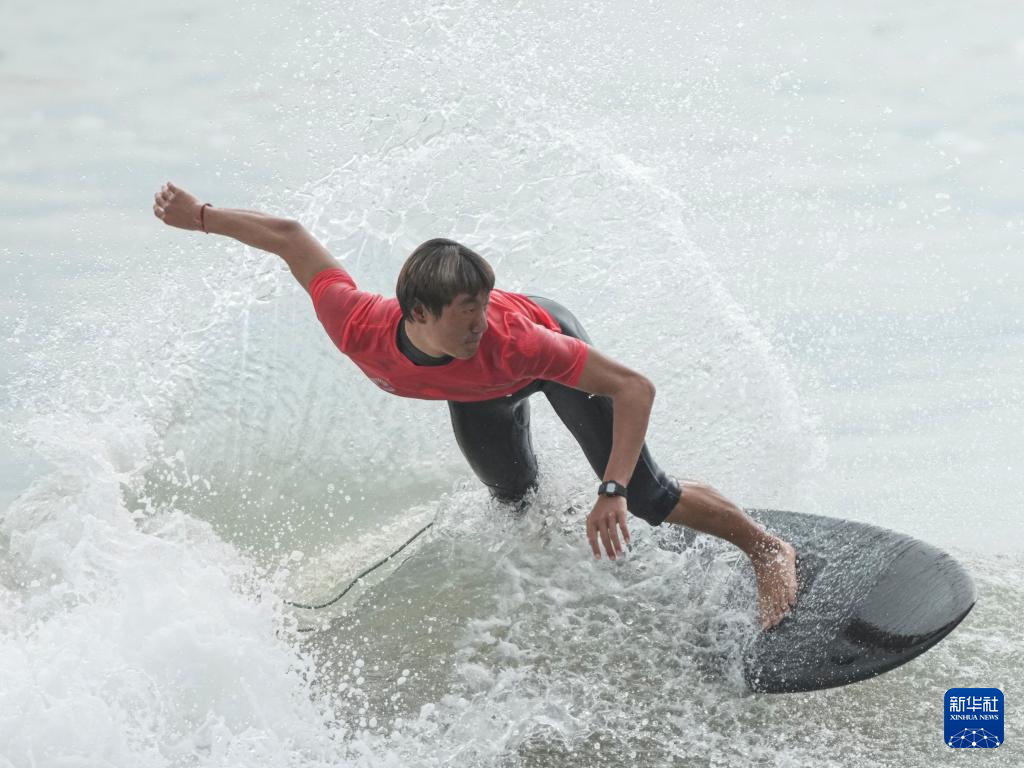 当日,第十五届全国运动会冲浪项目男子短板第一轮比赛在广东南澳举行。