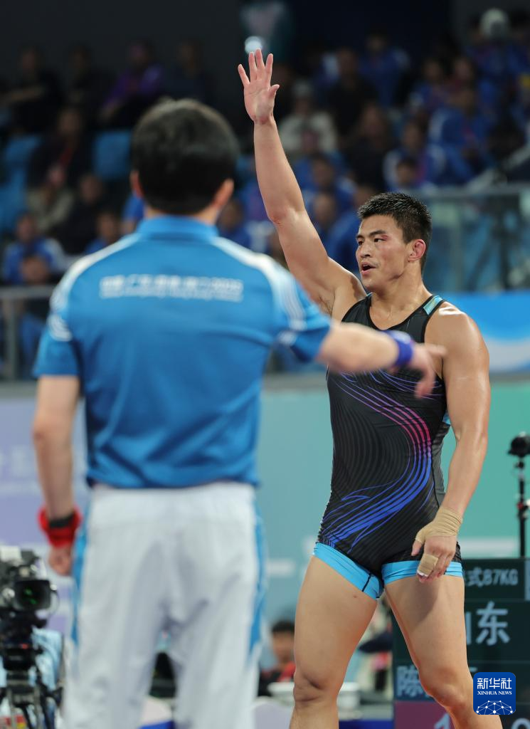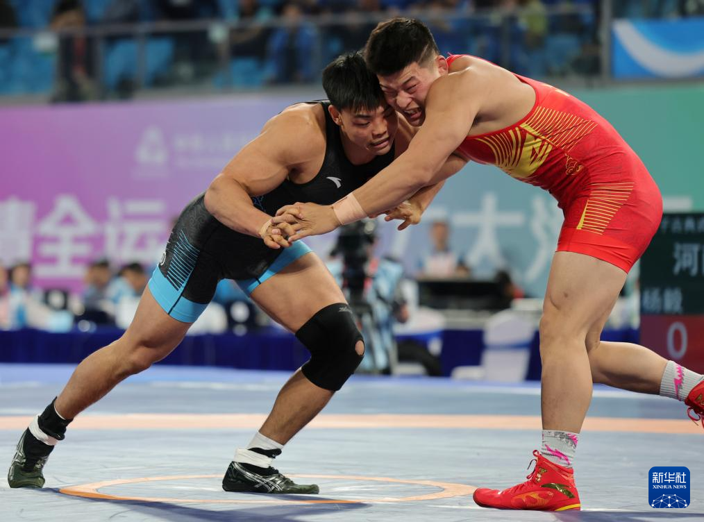 当日,第十五届全国运动会摔跤男子古典式87公斤级比赛在广东清远举行。