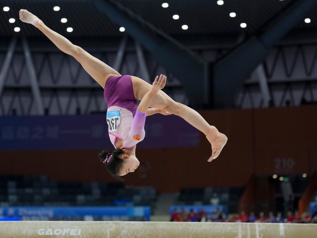 11月13日,广东队选手钟圻在平衡木比赛中。新华社记者 胥冰洁 摄