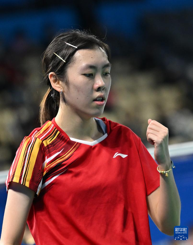 11月14日,湖北队选手阮欣悦在女单比赛中。她2比0战胜广东队选手孙艾琳。