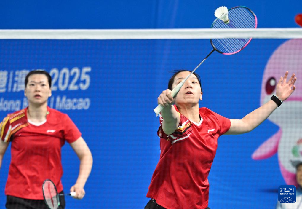 11月14日,广东队组合李怡婧(右)/罗徐敏在女双比赛中。她们2比0战胜湖北队组合杜玥/华晓蓓。