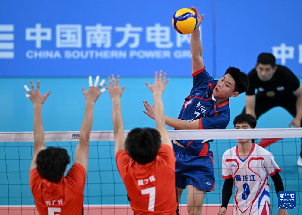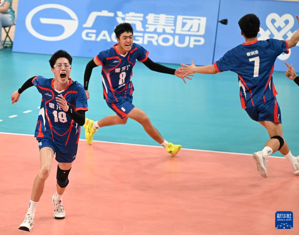 当日,在广州举行的第十五届全国运动会排球男子18岁以下组四分之一交叉赛中,黑龙江队3比2战胜河南队。