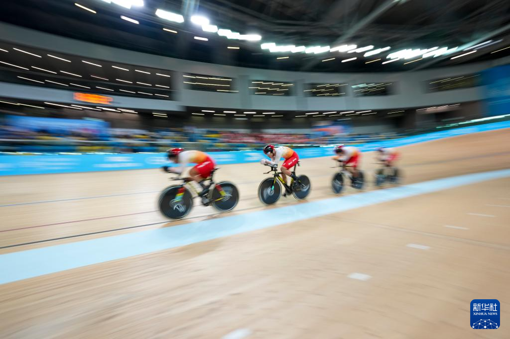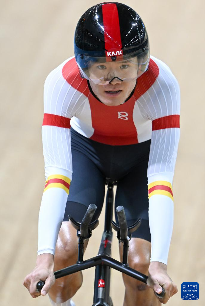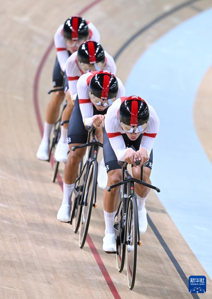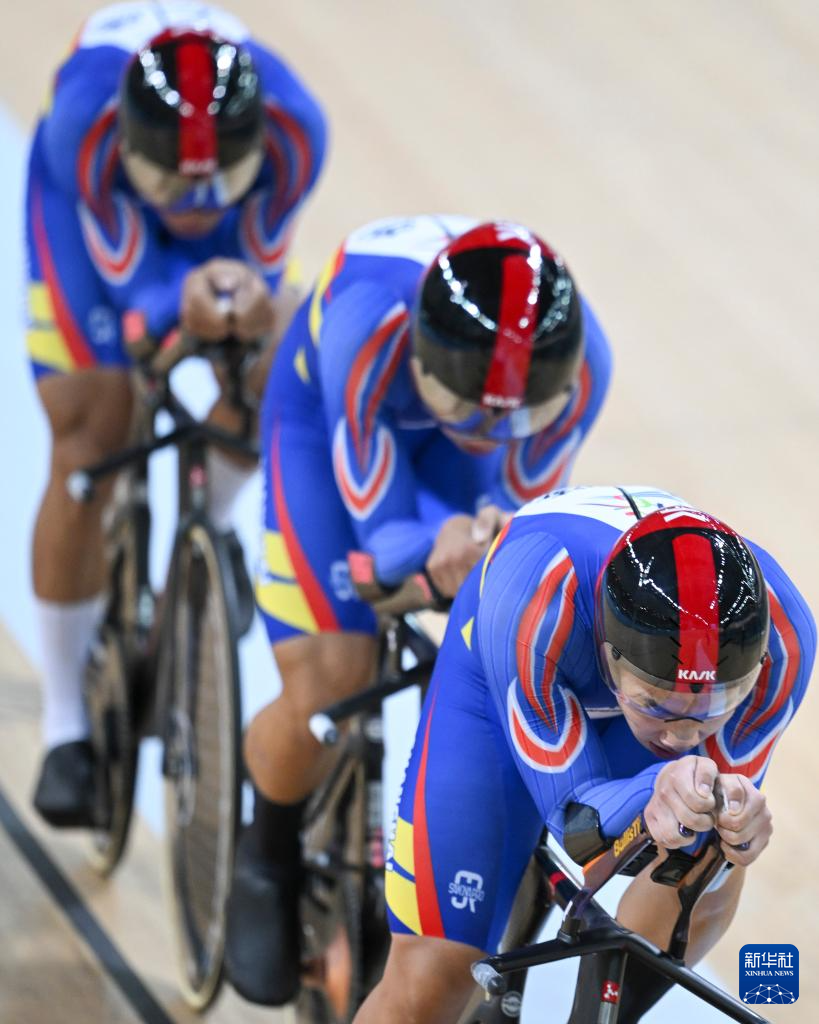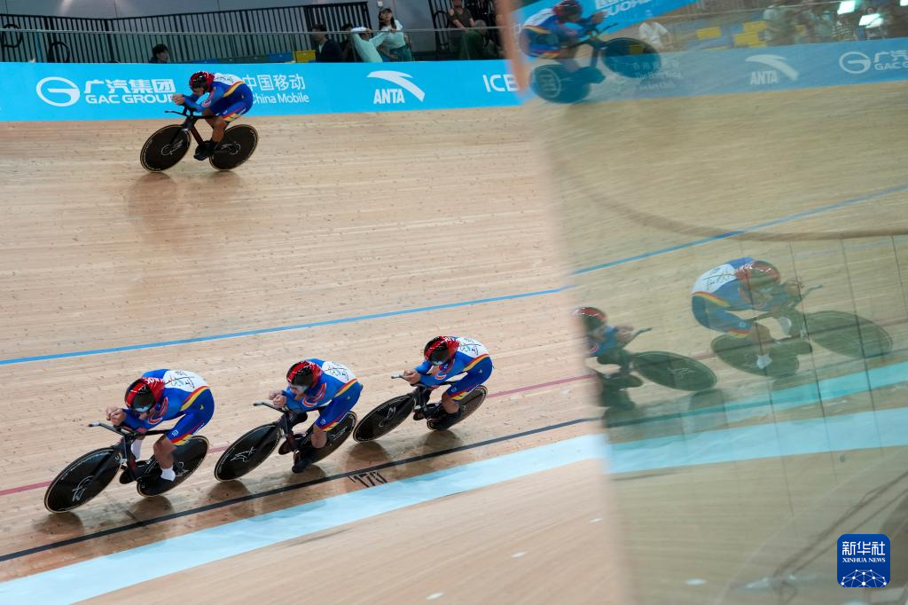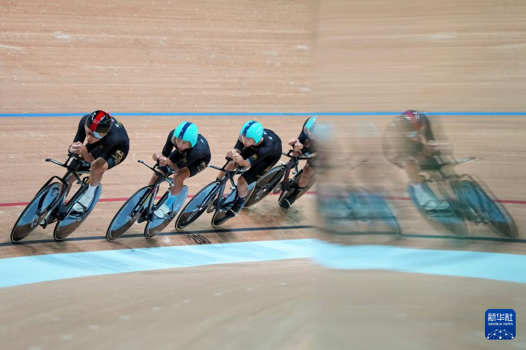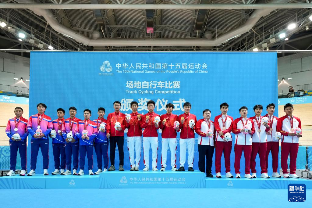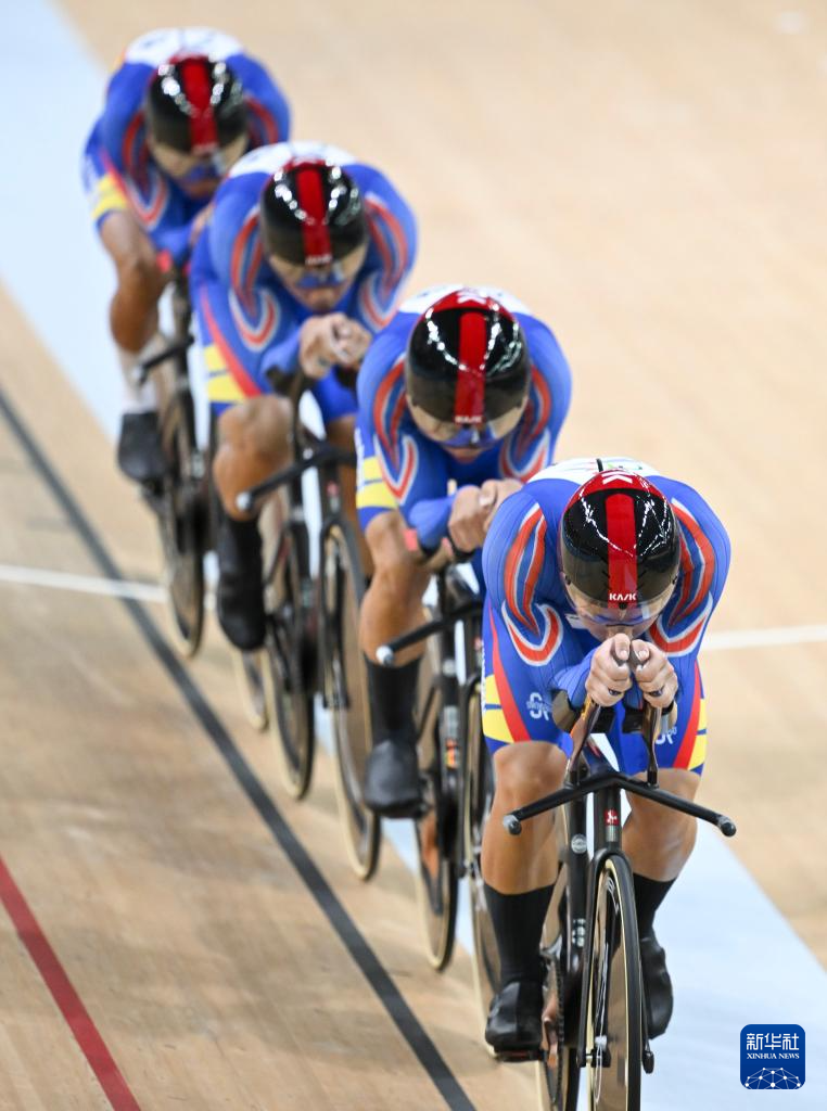 当日,第十五届全国运动会场地自行车男子团体追逐赛决赛在香港举行。