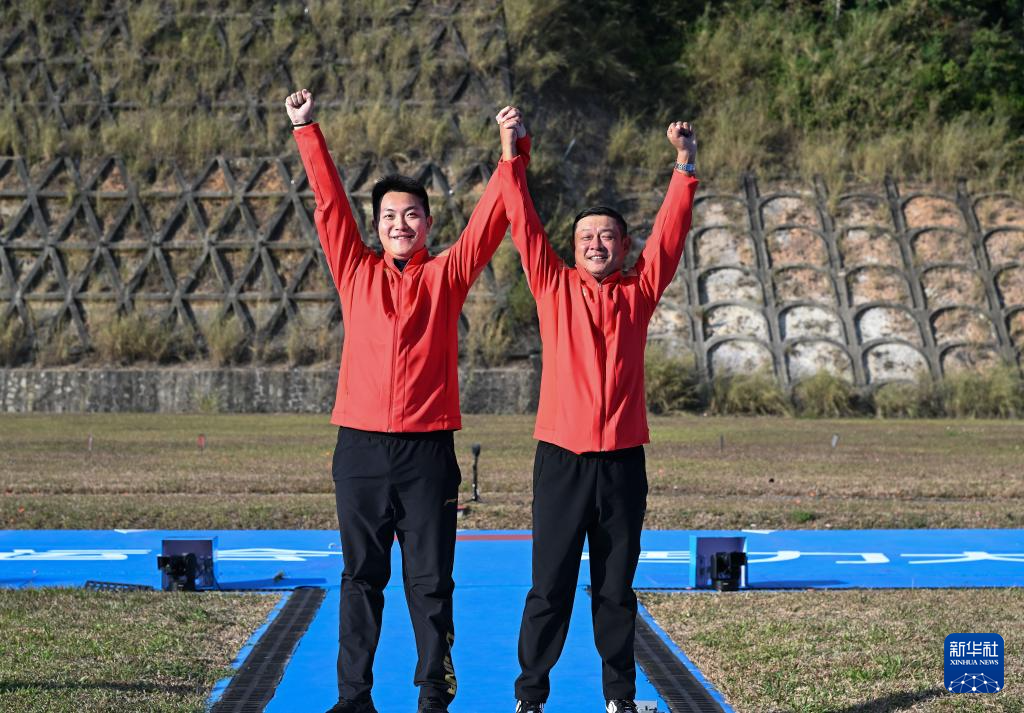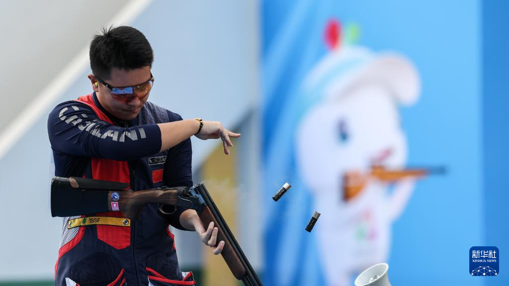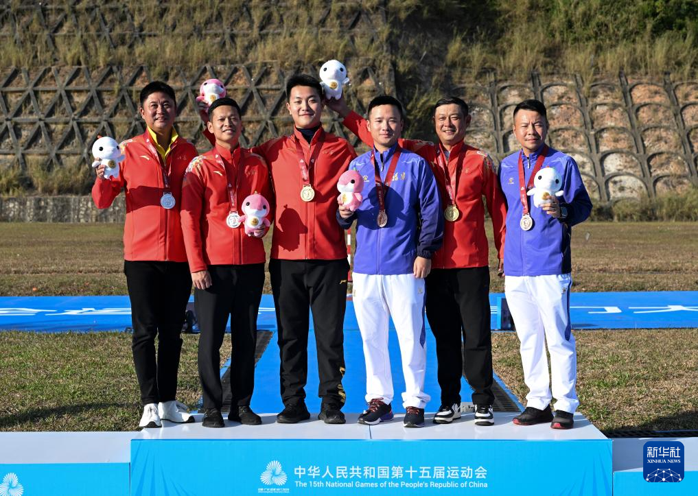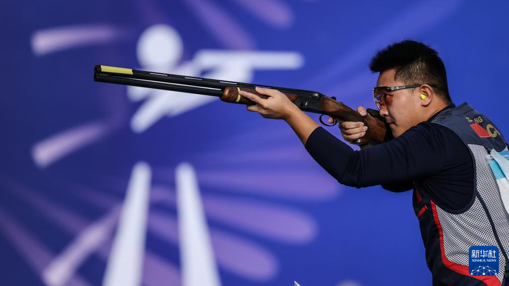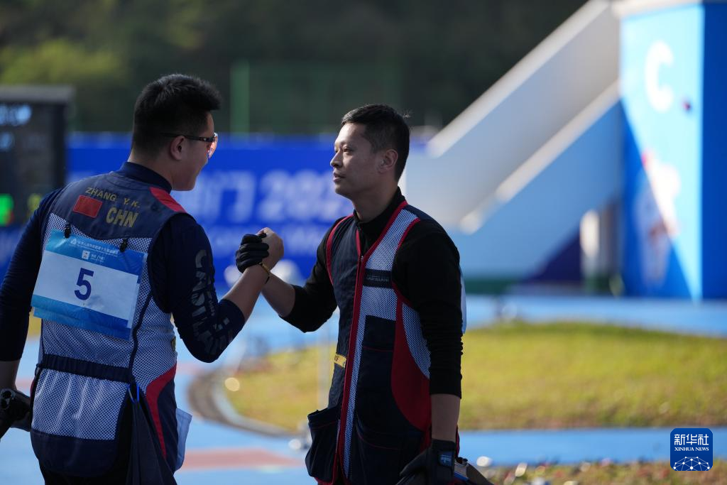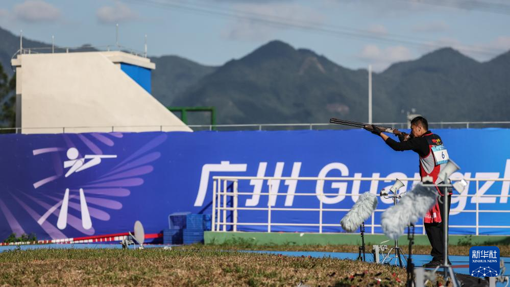 当日,第十五届全国运动会射击项目男子飞碟双向决赛在广州举行。