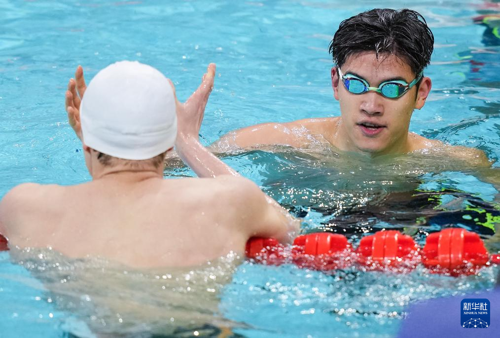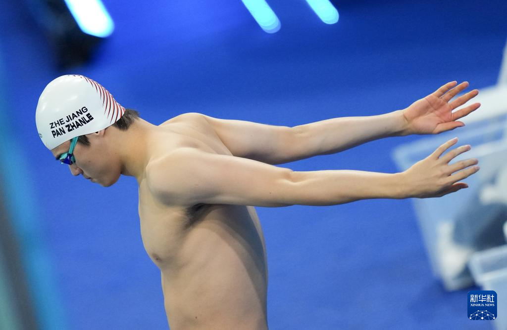 11月14日,浙江队选手潘展乐在比赛前热身。最终,他获得冠军。
