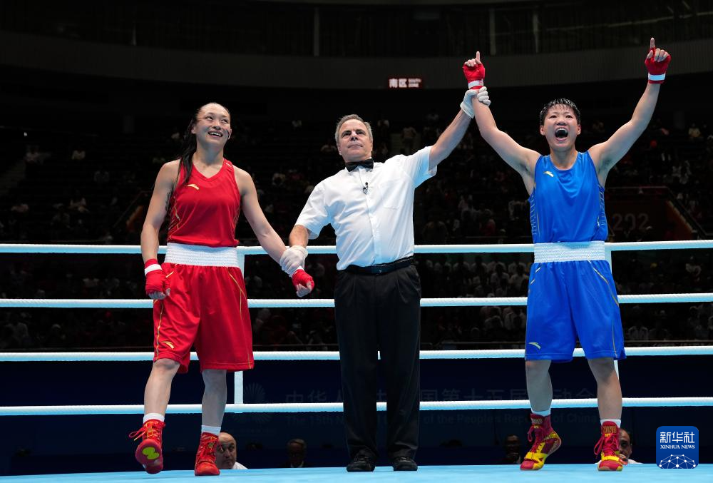 当日,在广东深圳进行的第十五届全国运动会拳击女子54公斤级决赛中,内蒙古队选手赵轩战胜河北队选手常园,夺得冠军。