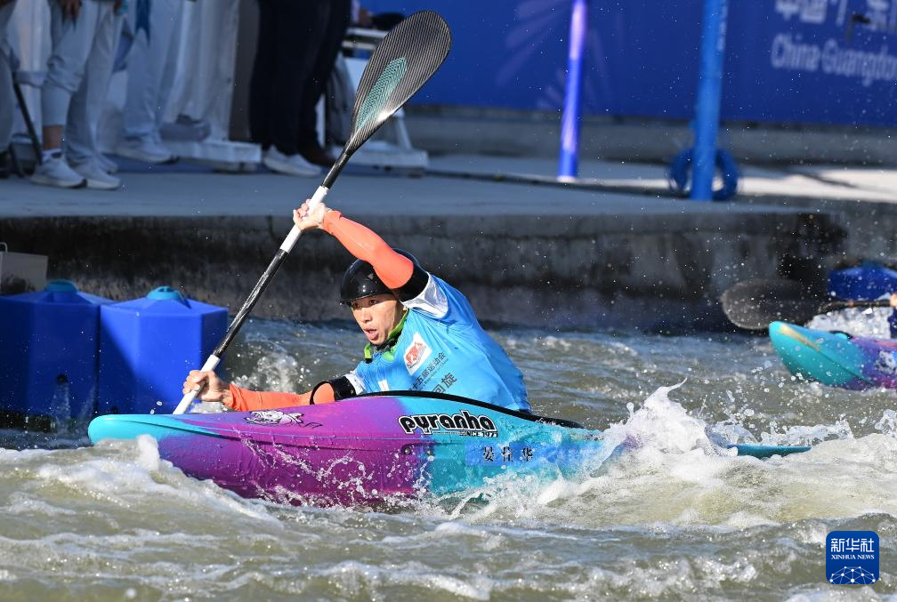 当日,第十五届全国运动会皮划艇激流回旋项目女子极限皮艇决赛在广州举行。