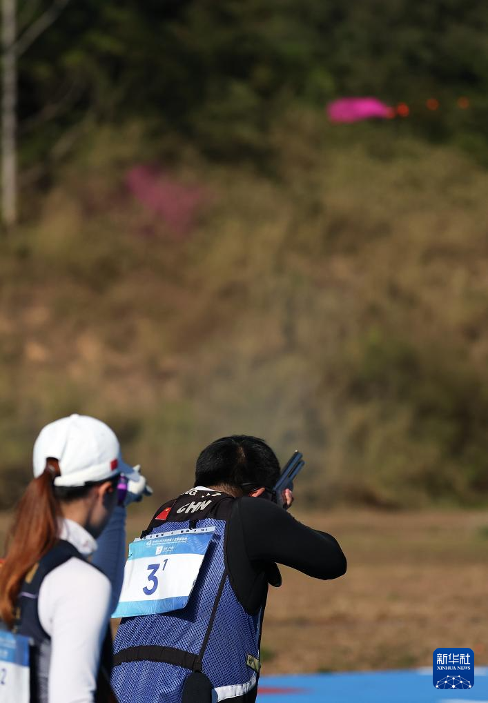 当日,第十五届全国运动会射击项目飞碟双向混合团体铜牌赛在广州举行,上海二队组合张景智/宋郑怡对阵陕西队选手万安涛/刘婷。