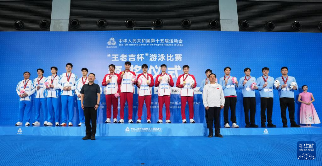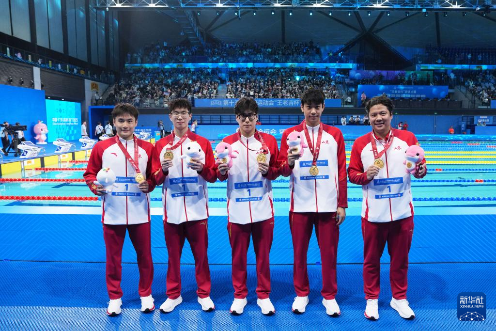当日,第十五届全国运动会游泳男子4X200米自由泳接力决赛在广东省深圳市举行。