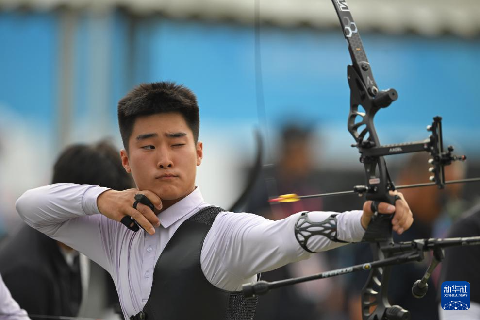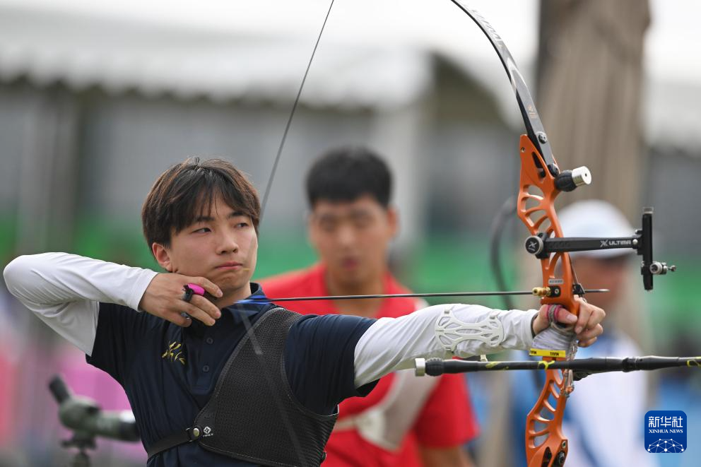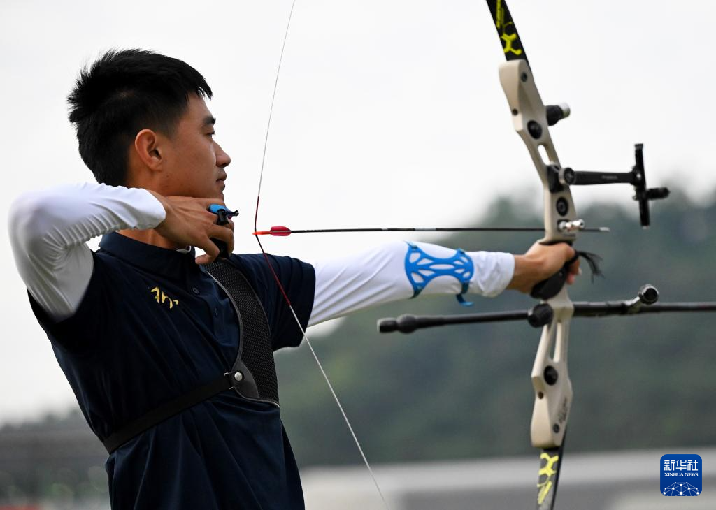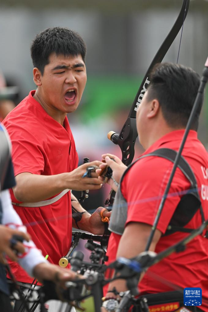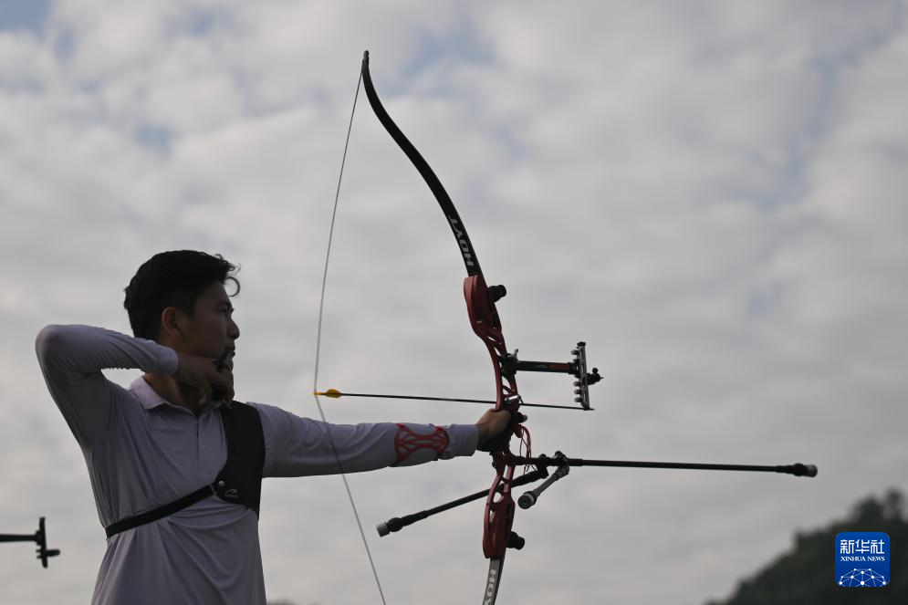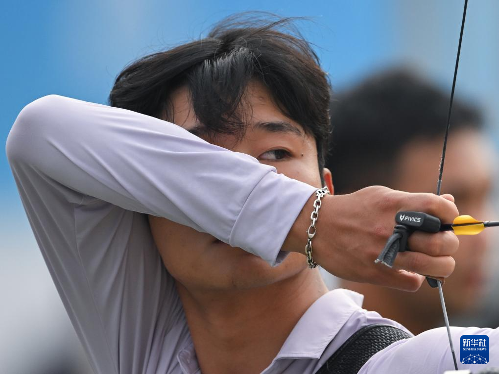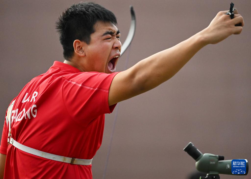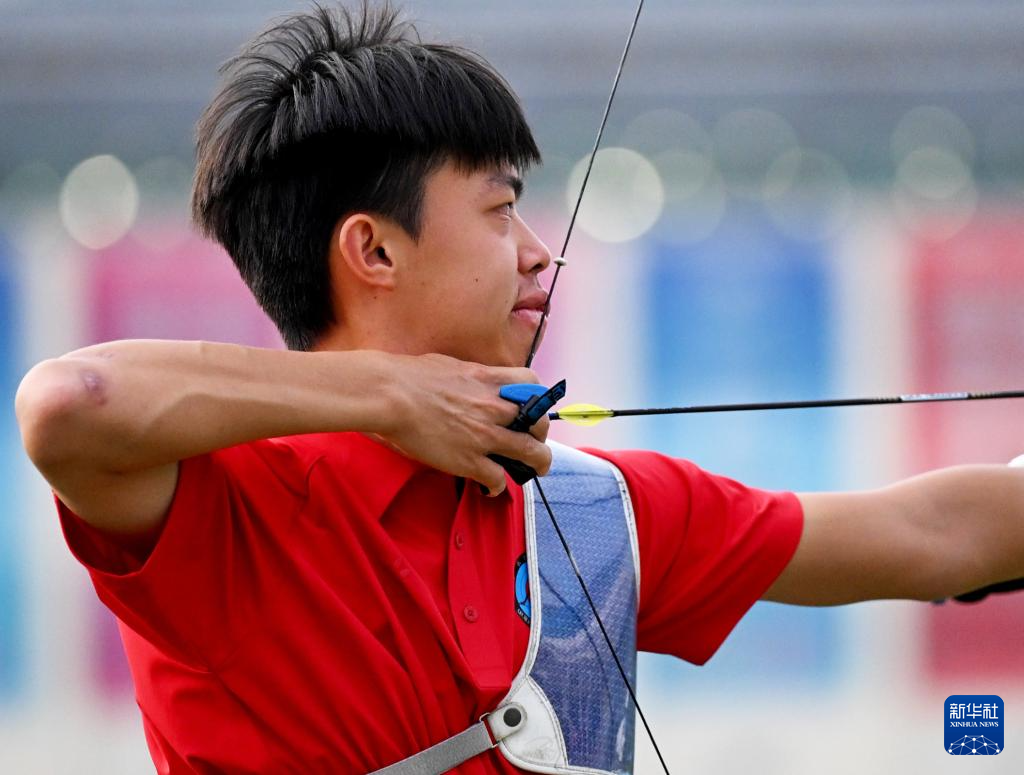 当日,第十五届全国运动会男子反曲弓团体八分之一淘汰赛在深圳举行。
