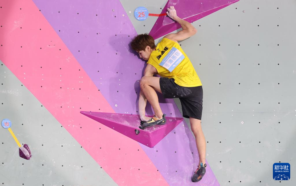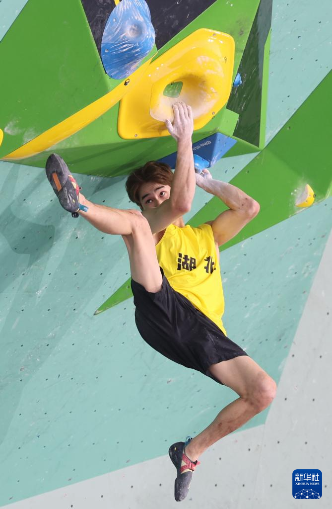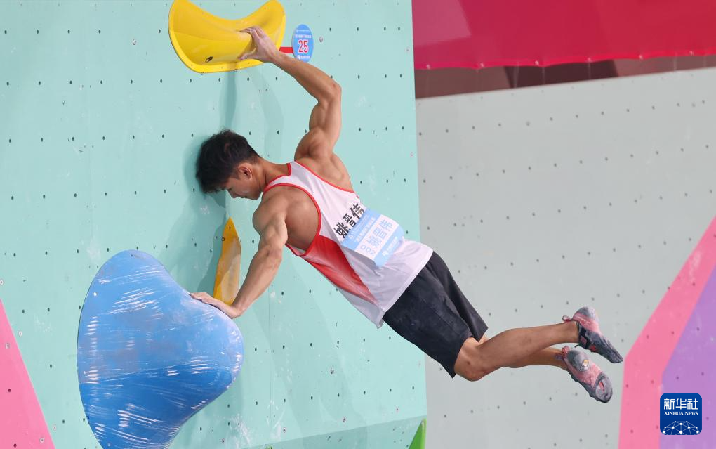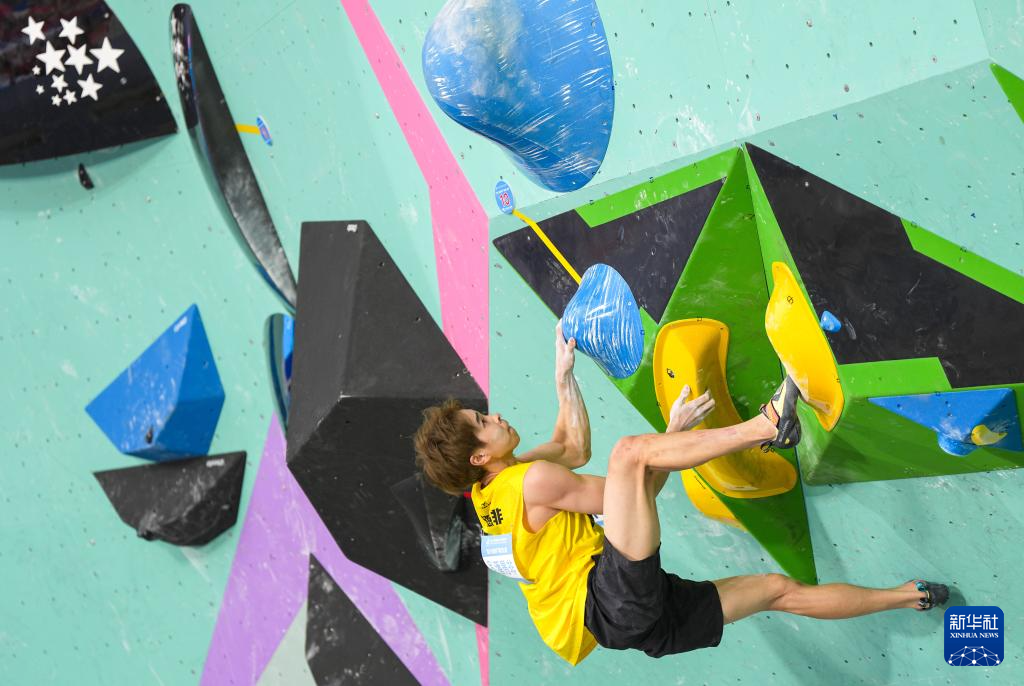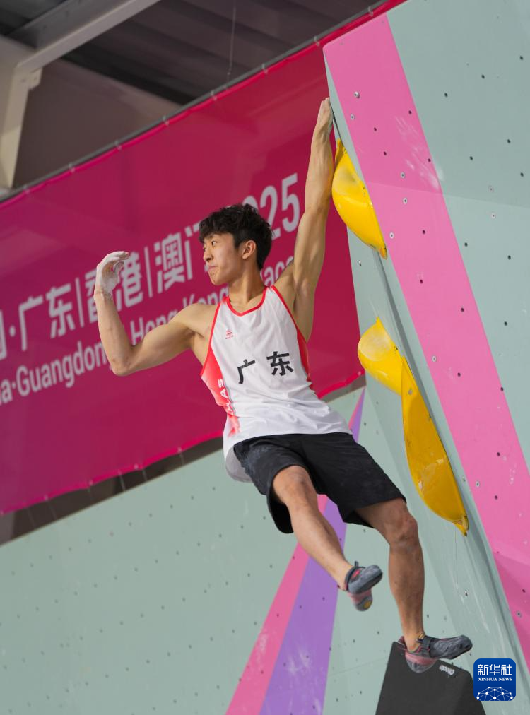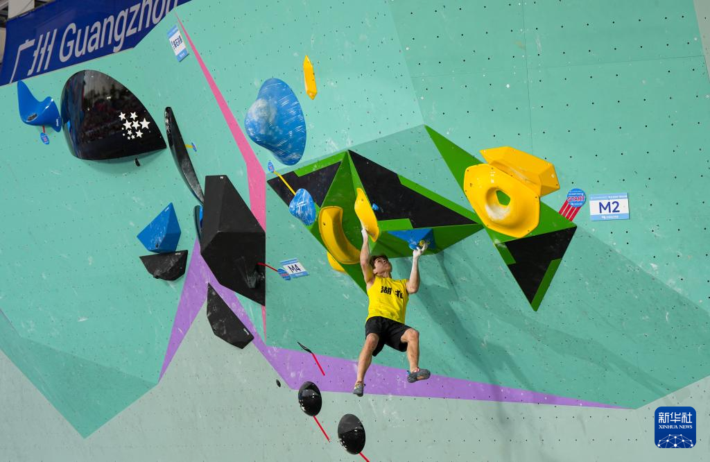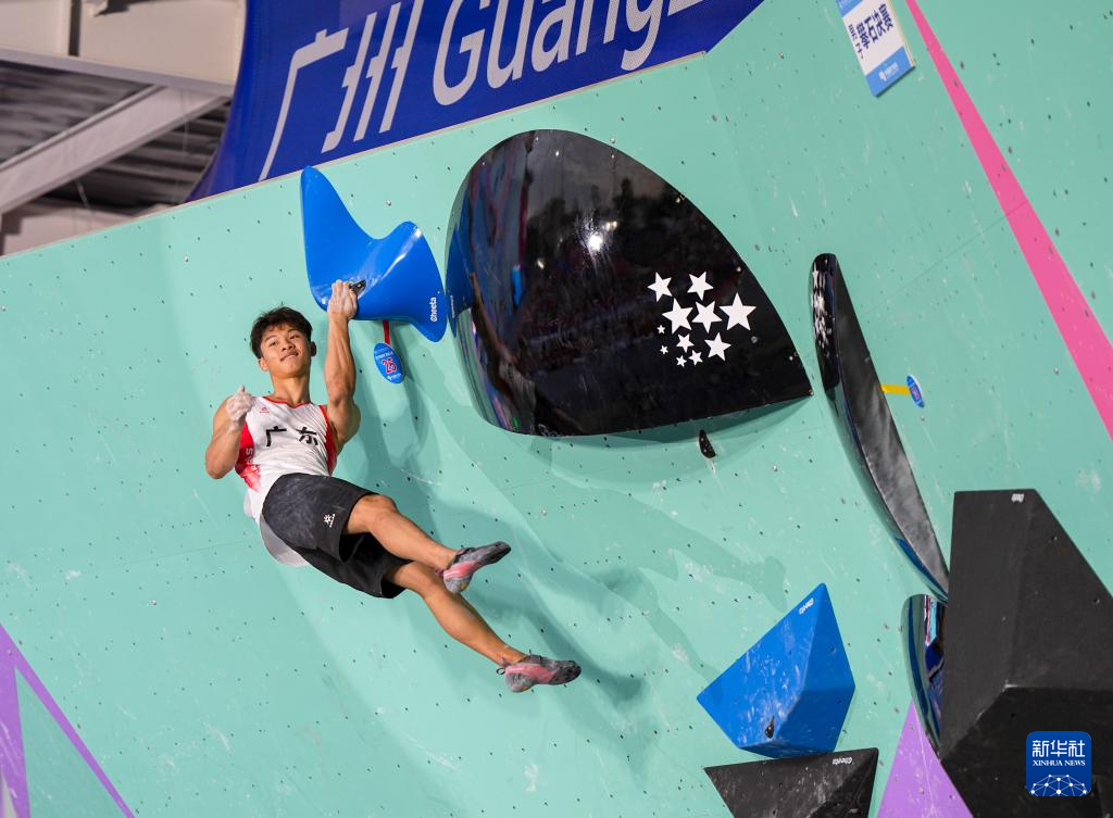 当日,第十五届全国运动会攀岩项目男子攀石决赛在广州举行。