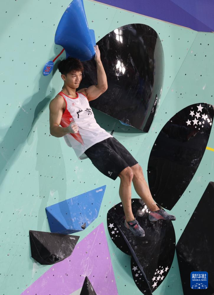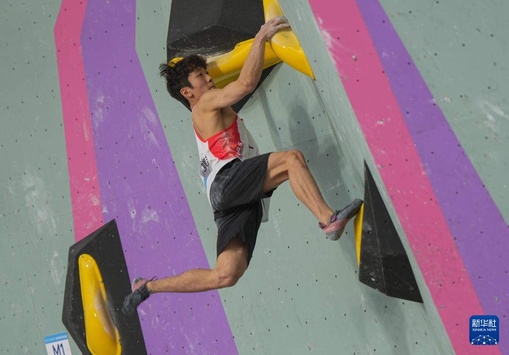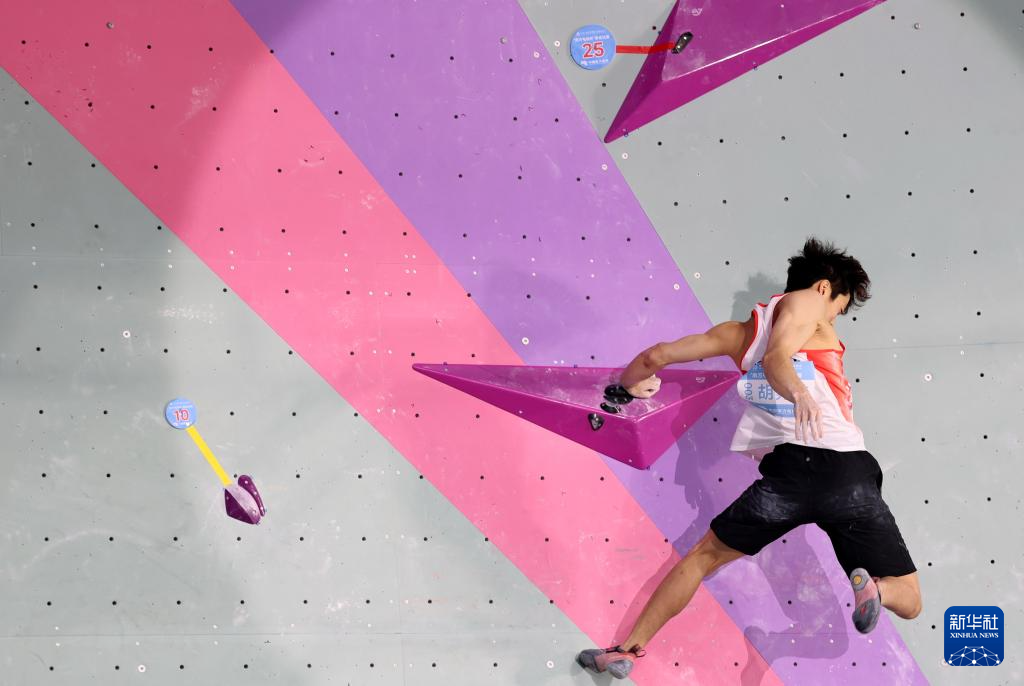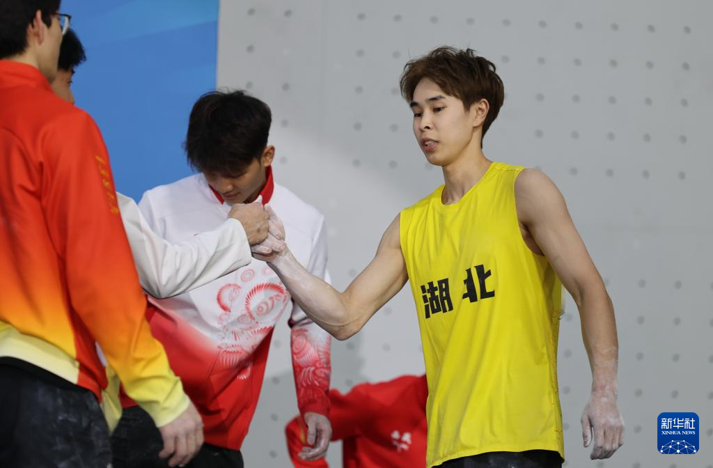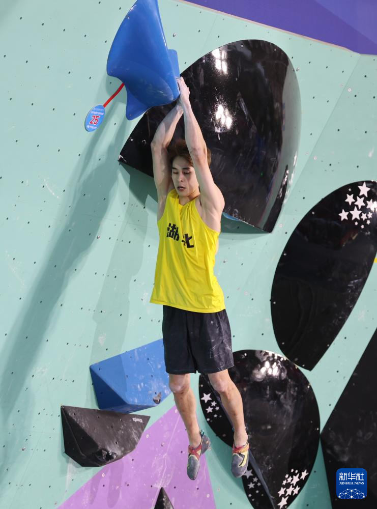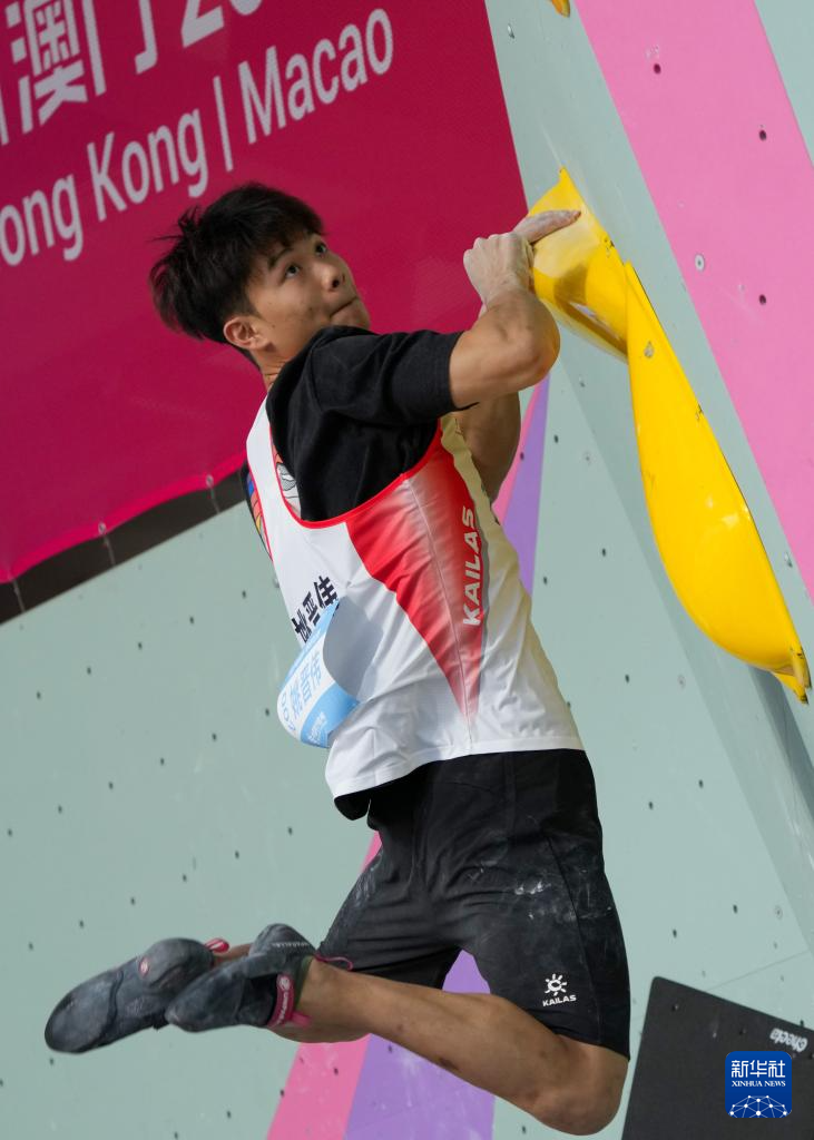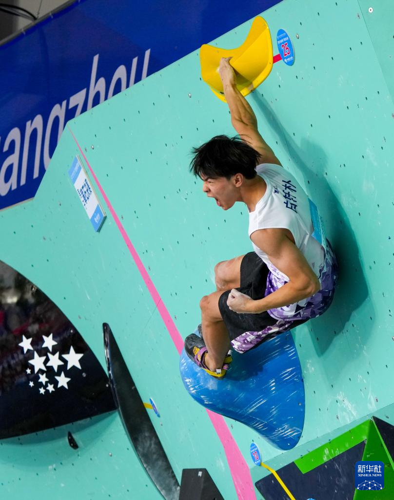 当日,第十五届全国运动会攀岩项目男子攀石决赛在广州举行。