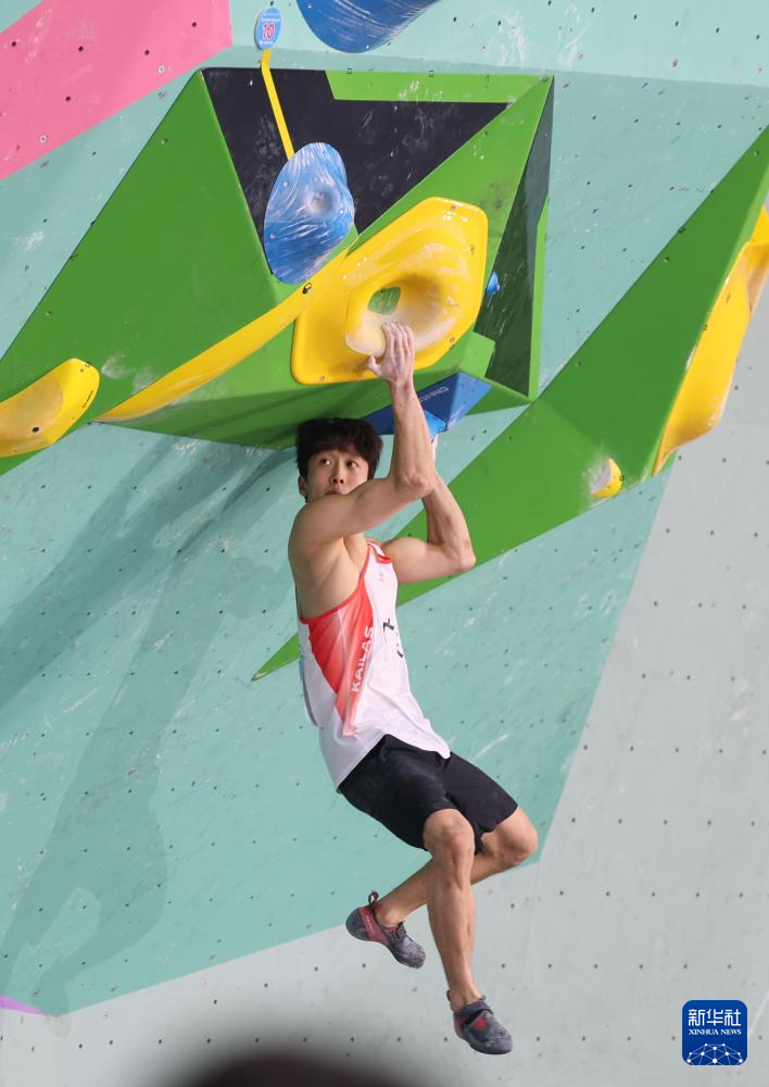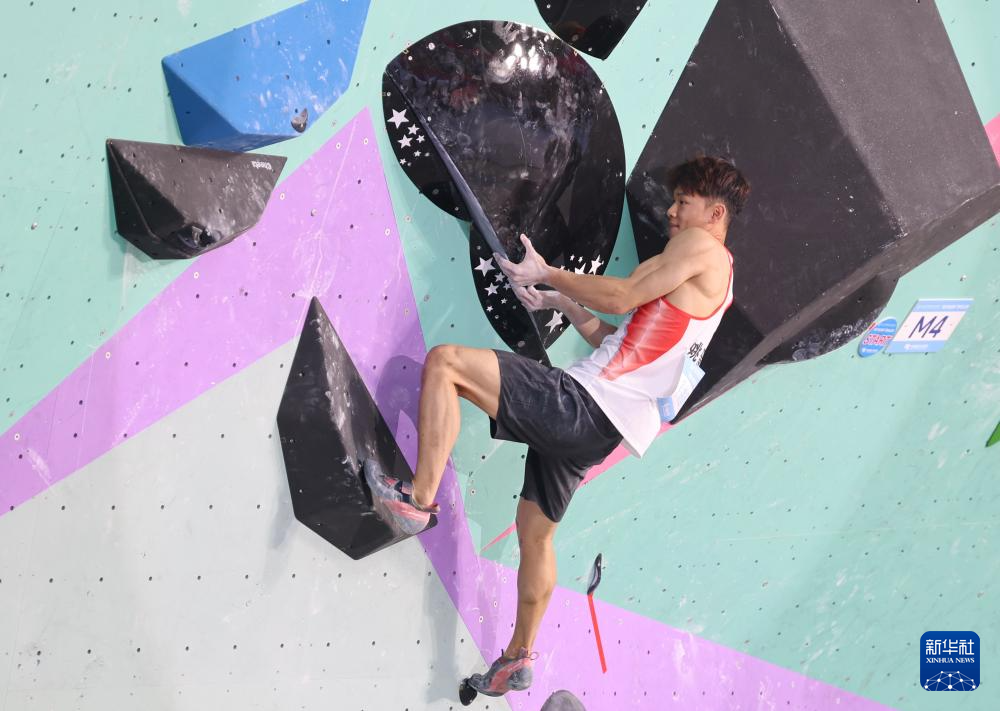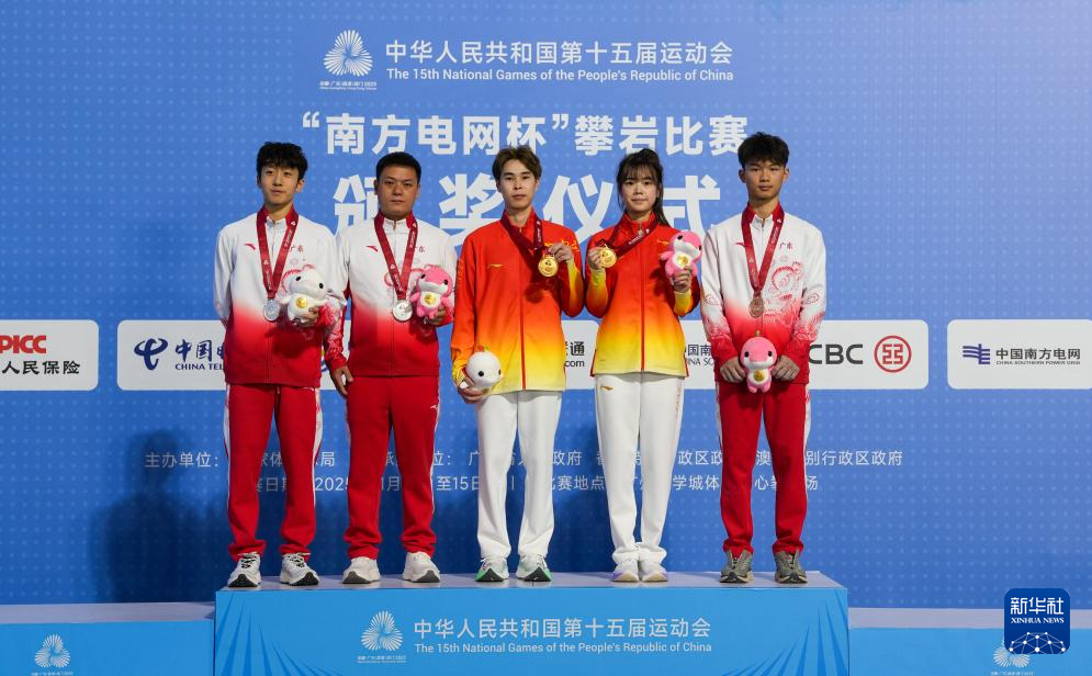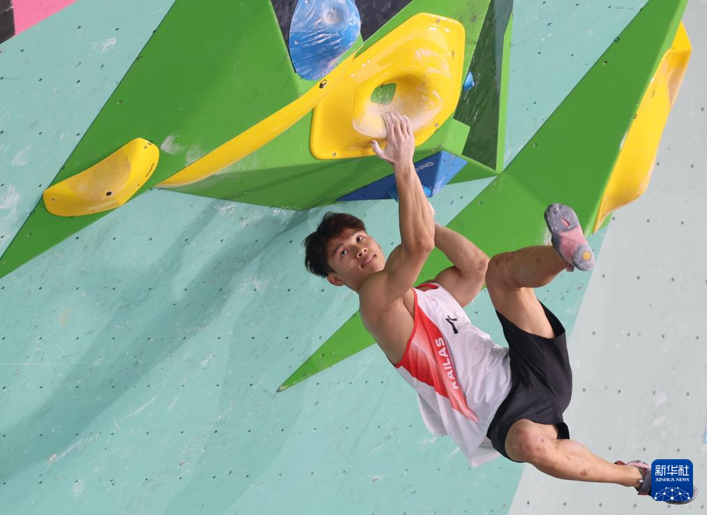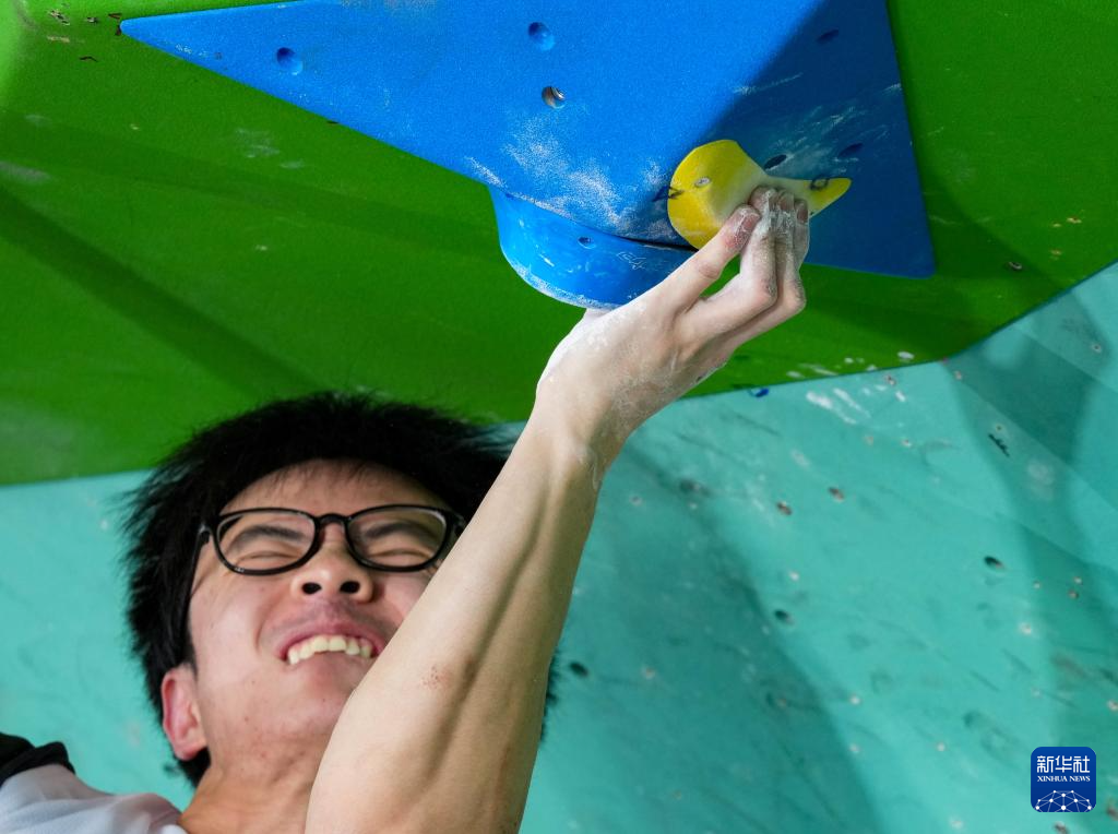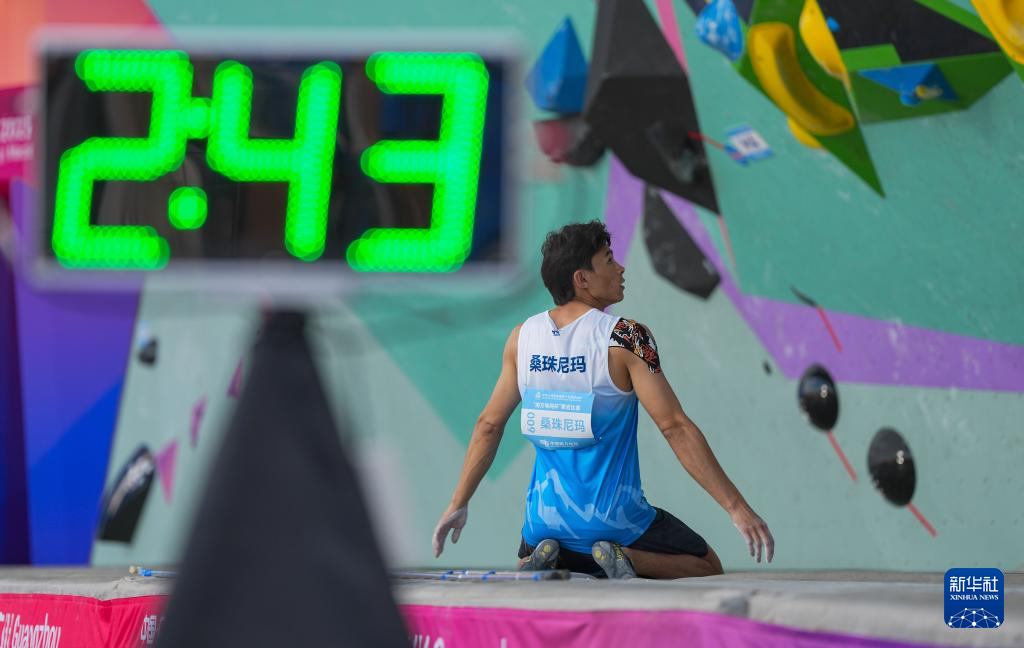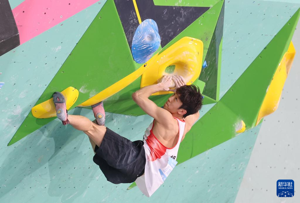 当日,第十五届全国运动会攀岩项目男子攀石决赛在广州举行。