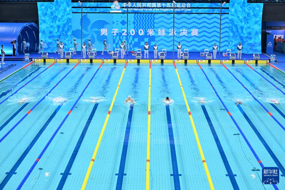 当日,第十五届全国运动会游泳男子200米蛙泳决赛在广东省深圳市举行。