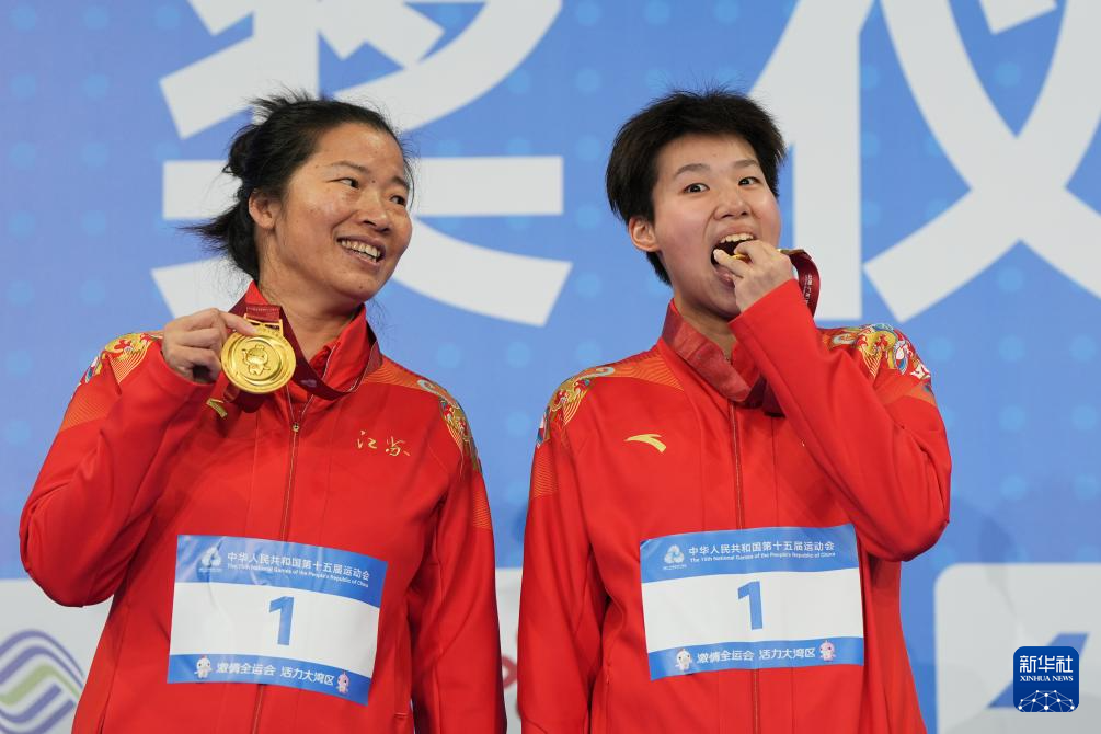 11月15日,江苏队选手吕沁遥(右)在比赛后。她获得冠军。