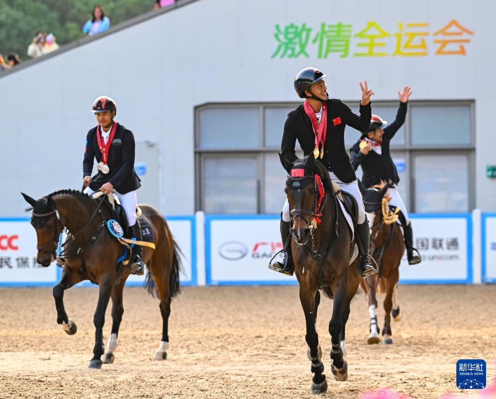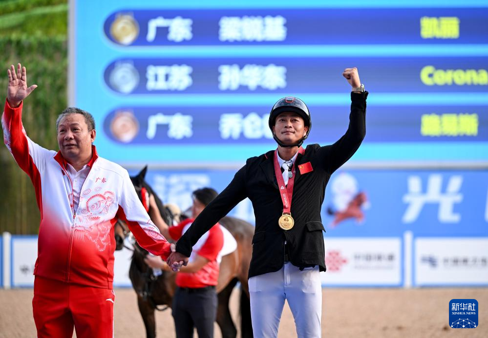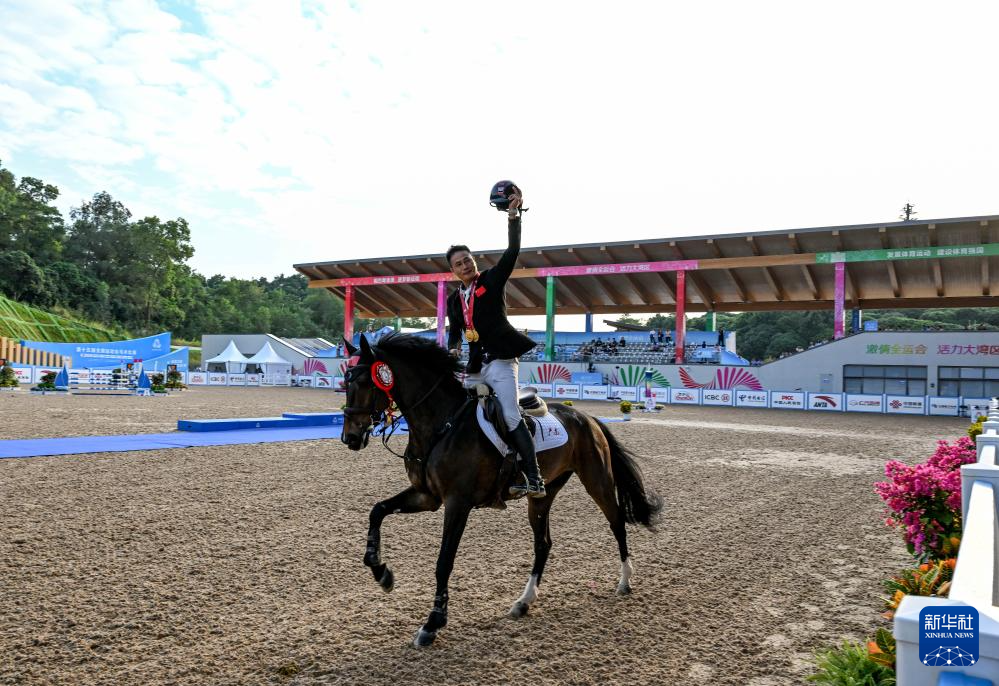 当日,第十五届全国运动会马术三项赛个人赛场地障碍决赛在广东深圳举行。广东队选手梁锐基获得冠军,江苏队选手孙华东获得亚军,广东队选手乔仑巴特获得季军。