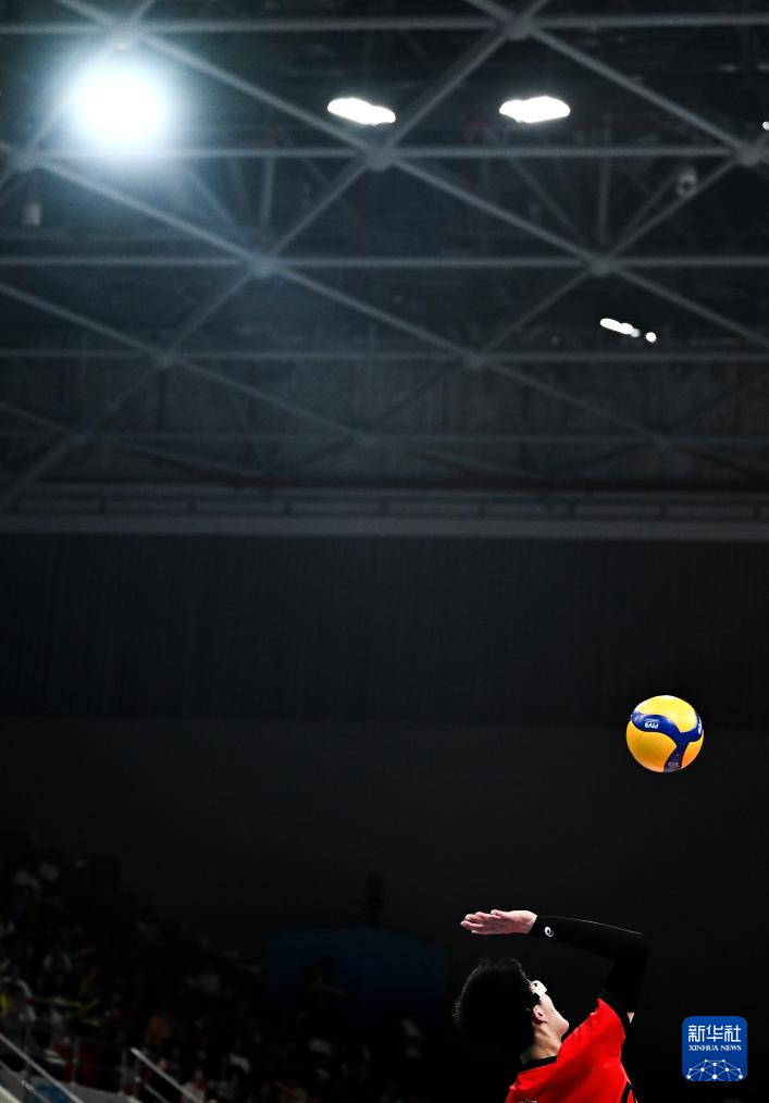 11月15日,江苏队球员魏凡博在比赛中发球。