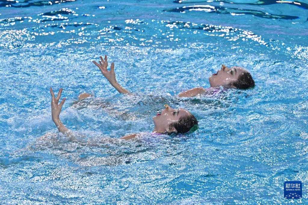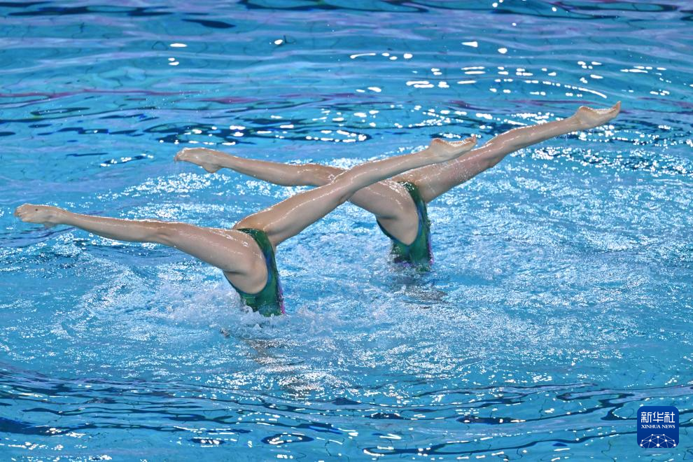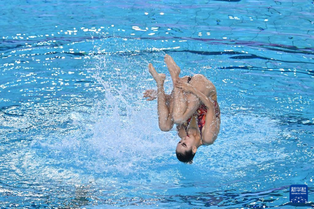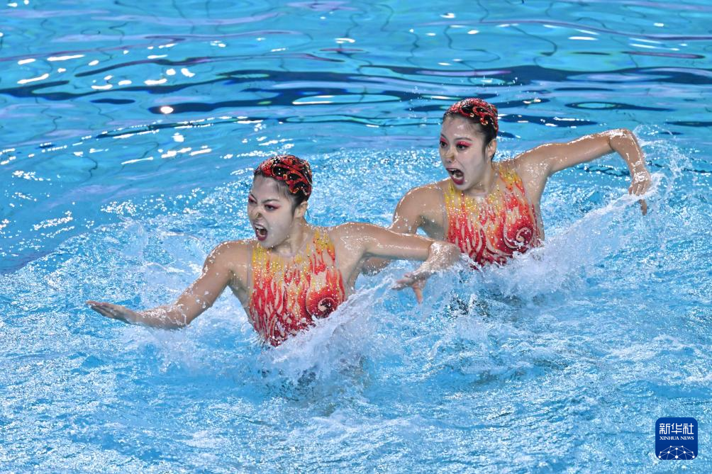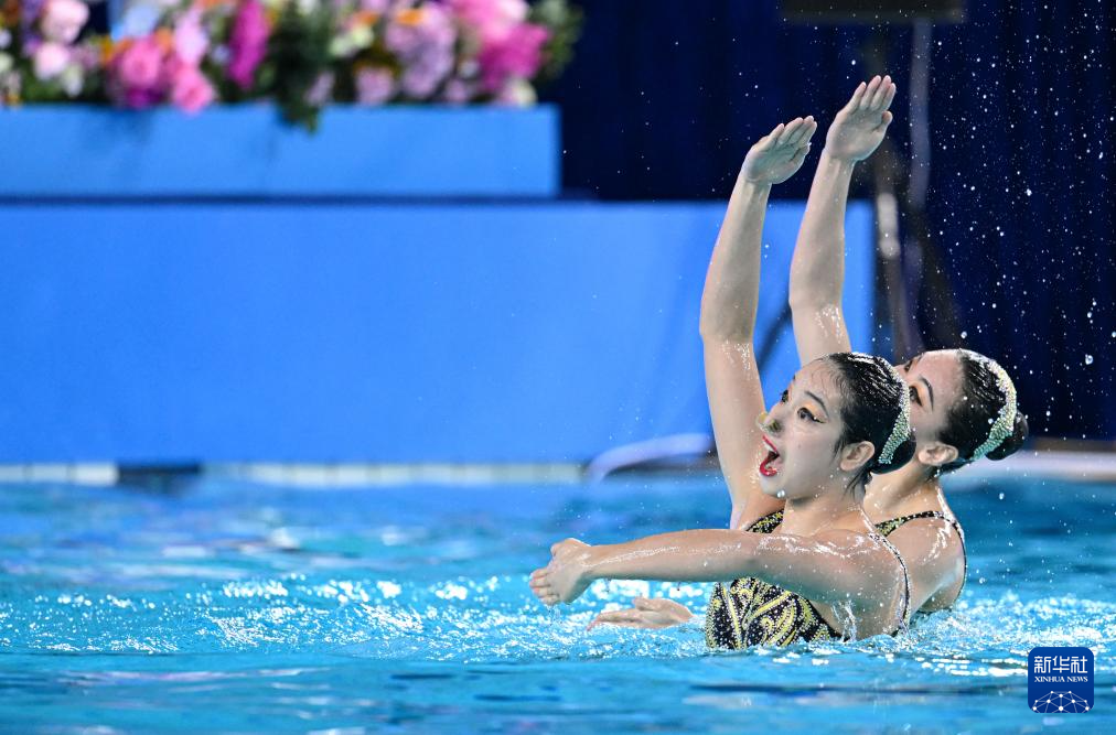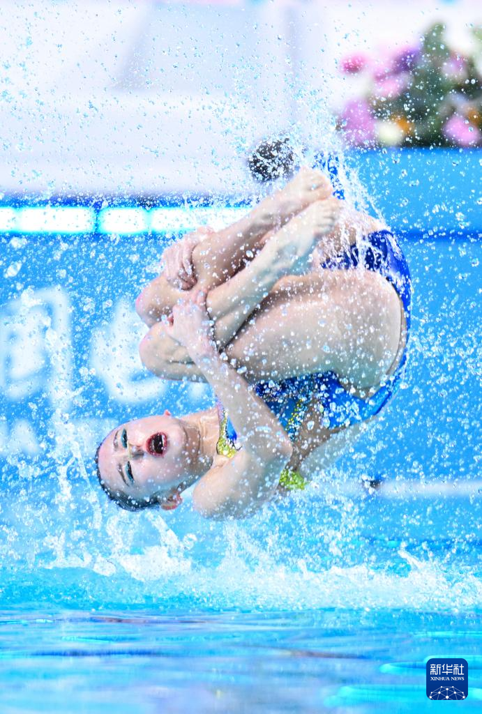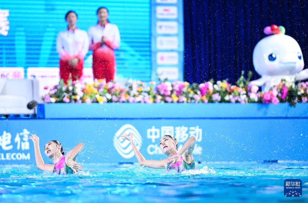 当日,第十五届全国运动会花样游泳女子双人技术自选比赛在广东江门举行。