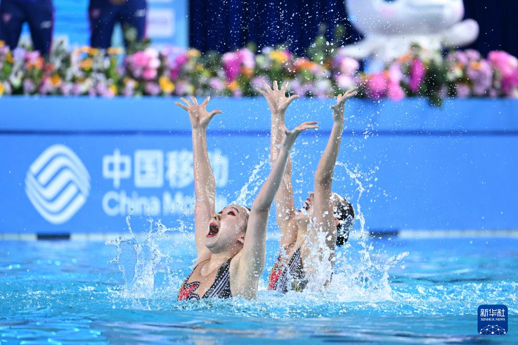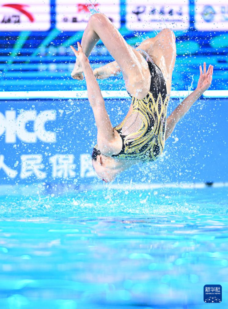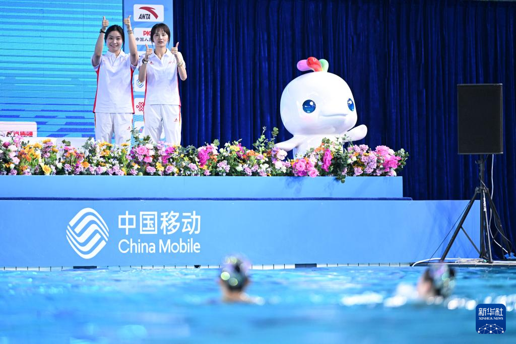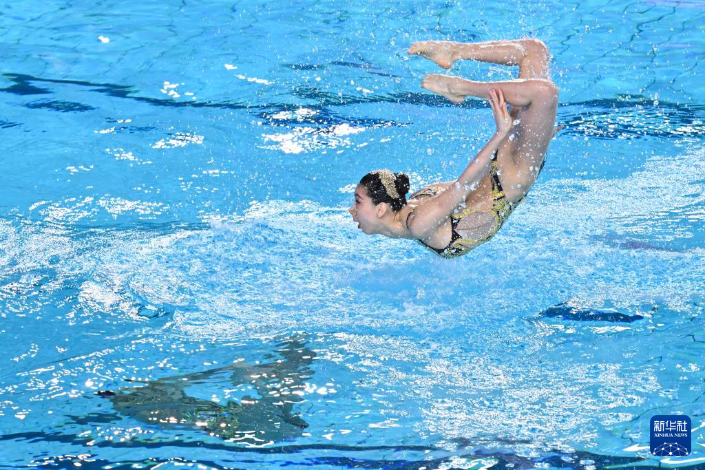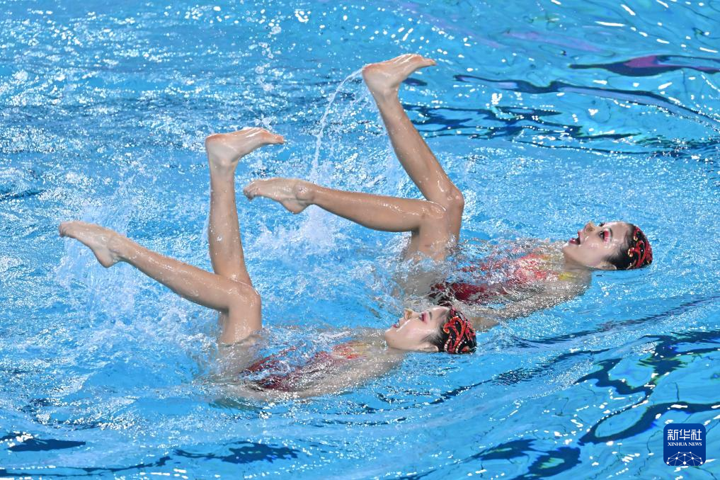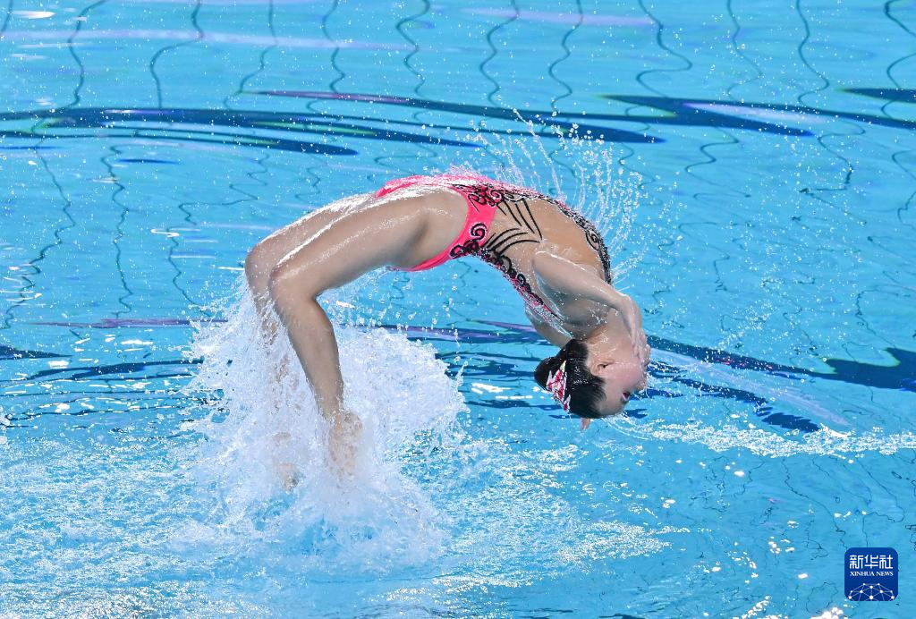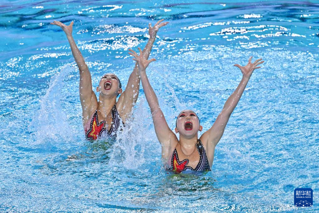 当日,第十五届全国运动会花样游泳女子双人技术自选比赛在广东江门举行。