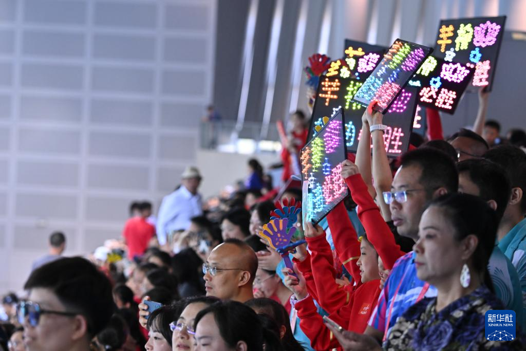 11月15日,广东队组合王柳懿/王芊懿和教练在比赛后向观众挥手致意。该队获得女子双人技术自选小项第1名。