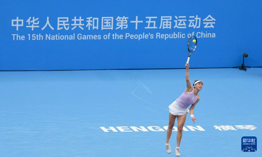 当日,第十五届全国运动会网球项目女子单打第二轮在广东横琴举行。