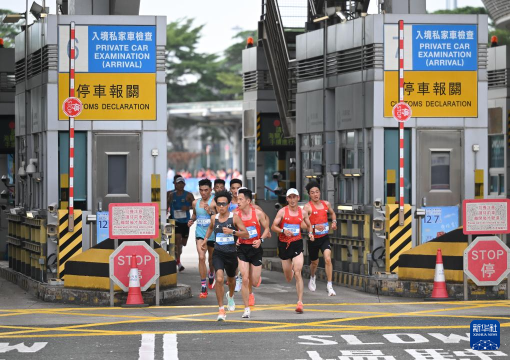 11月15日,参赛选手在比赛中经过深圳湾口岸进入香港。