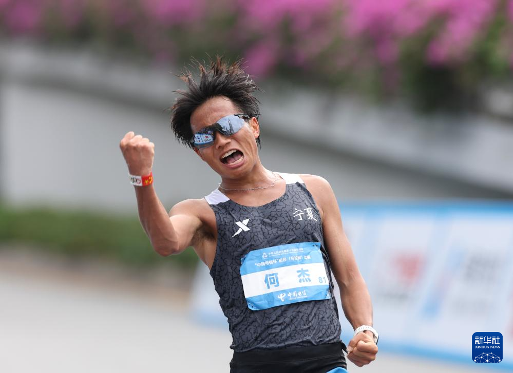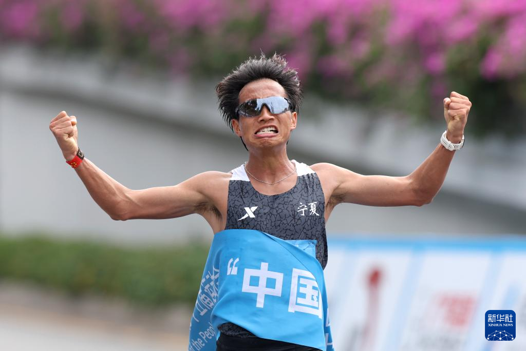 11月15日,宁夏队选手何杰在比赛后庆祝。最终他夺得冠军。