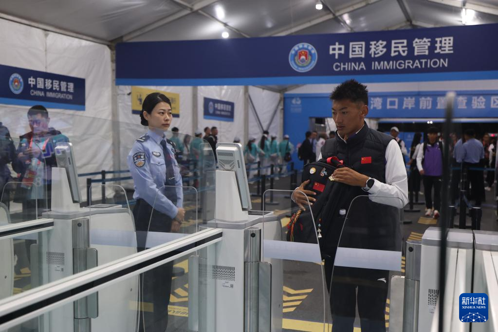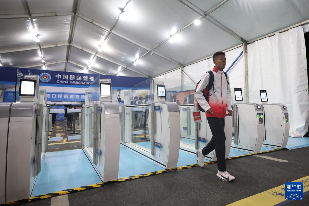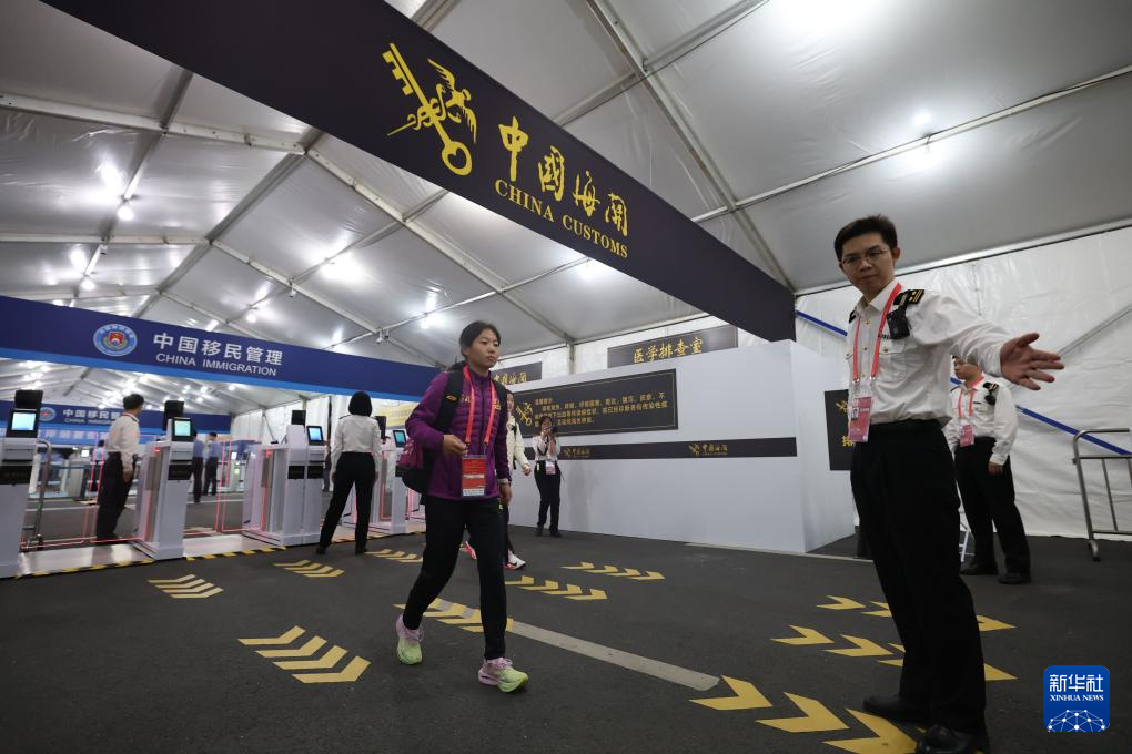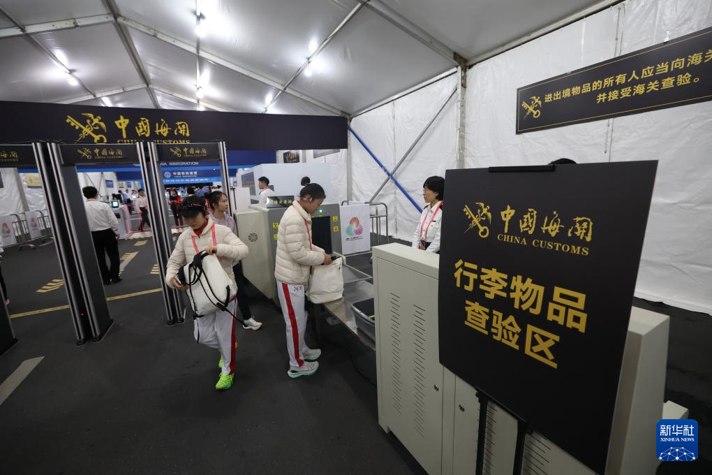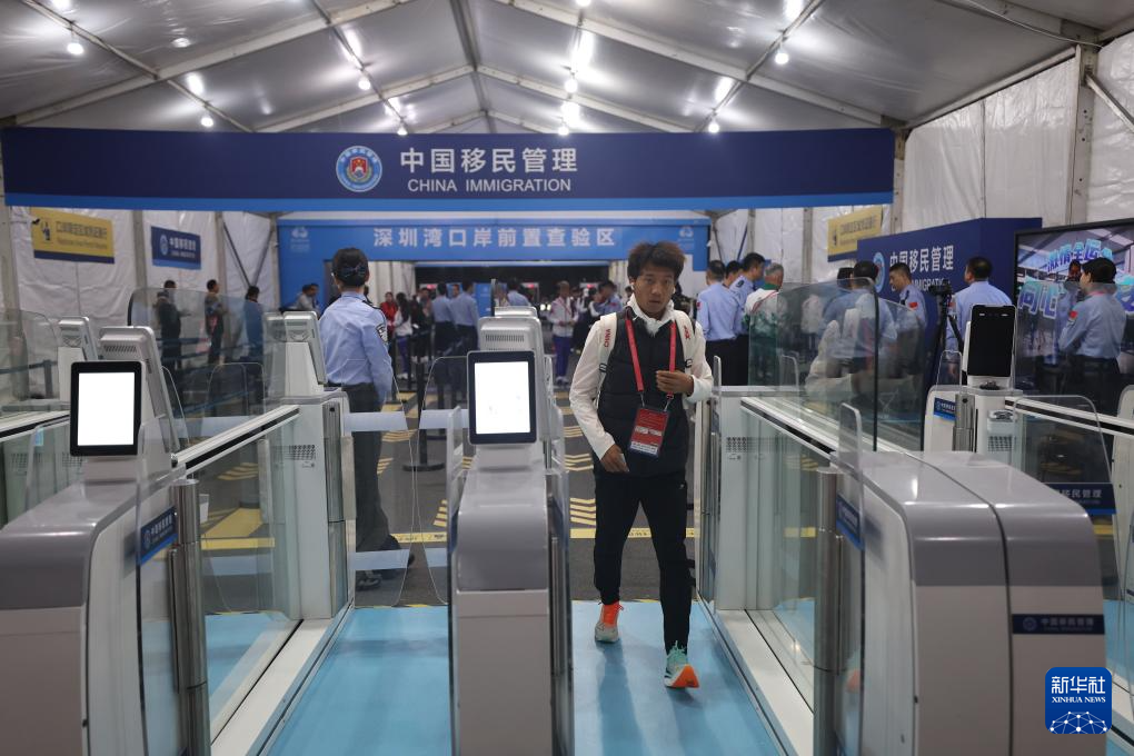 11月15日,比赛前,参赛选手在深圳湾口岸前置查验区完成海关查验手续。
