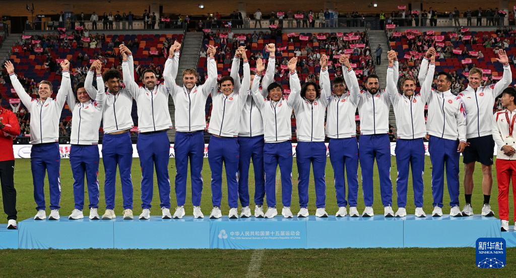 当日,第十五届全国运动会7人制橄榄球男子颁奖仪式在香港举行。