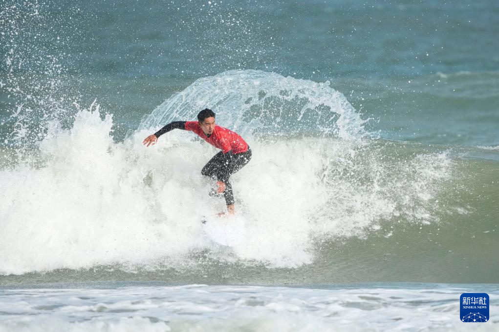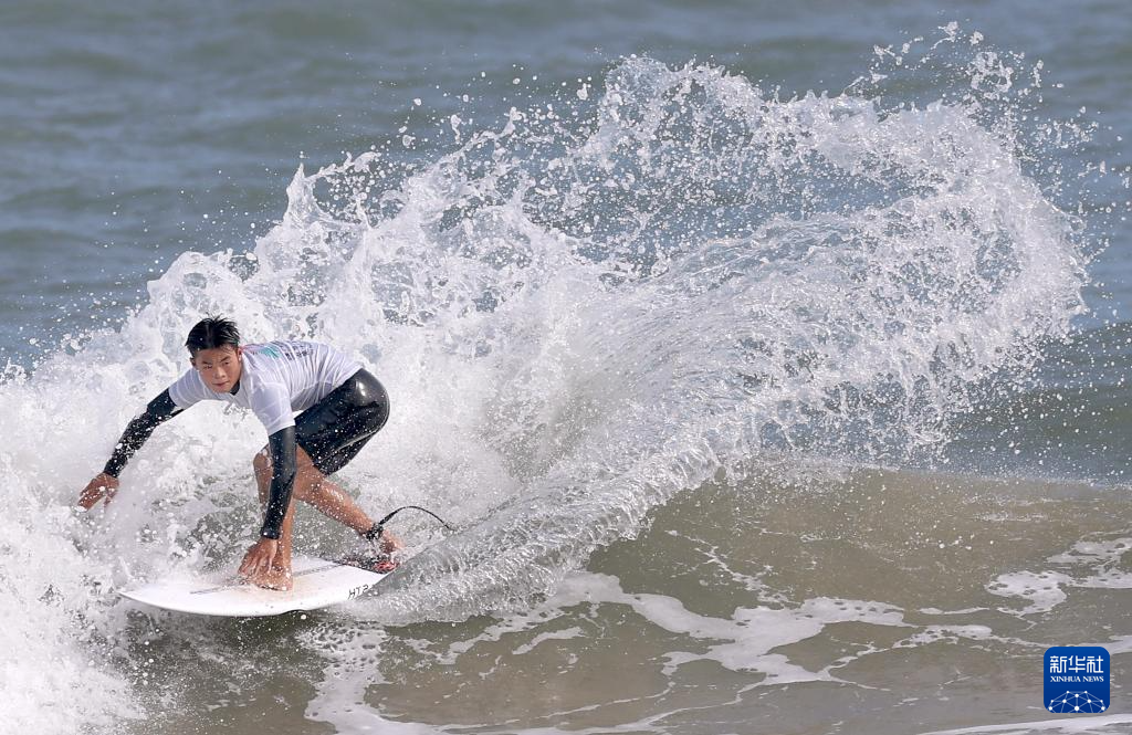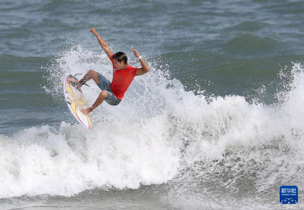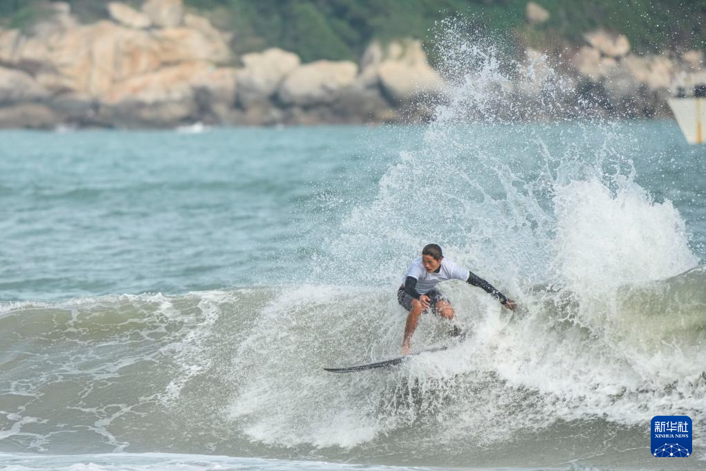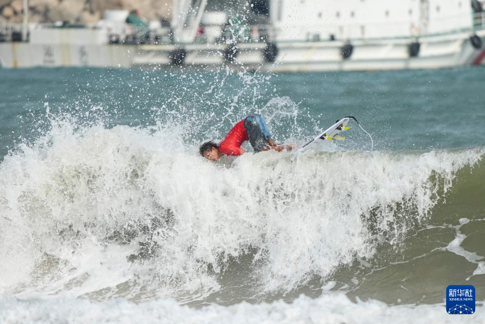 第十五届全国运动会冲浪男子短板四分之一决赛在广东南澳举行。