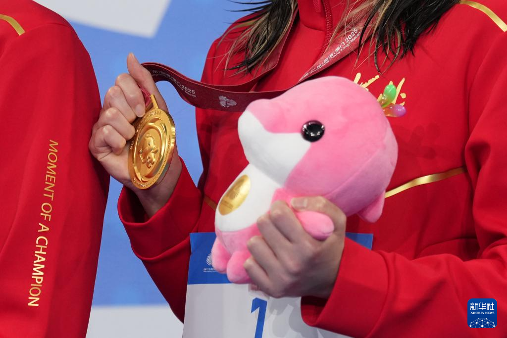 11月16日,获得冠军的河北队选手李冰洁在颁奖仪式上手持金牌和吉祥物玩偶。