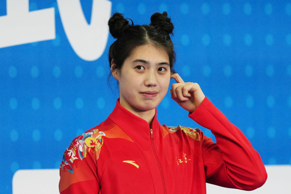 对于丸子头,张雨霏笑着解释:“之前答应粉丝们,如果我再次站上第一名的领奖台,那我就扎一个‘哪吒’。”